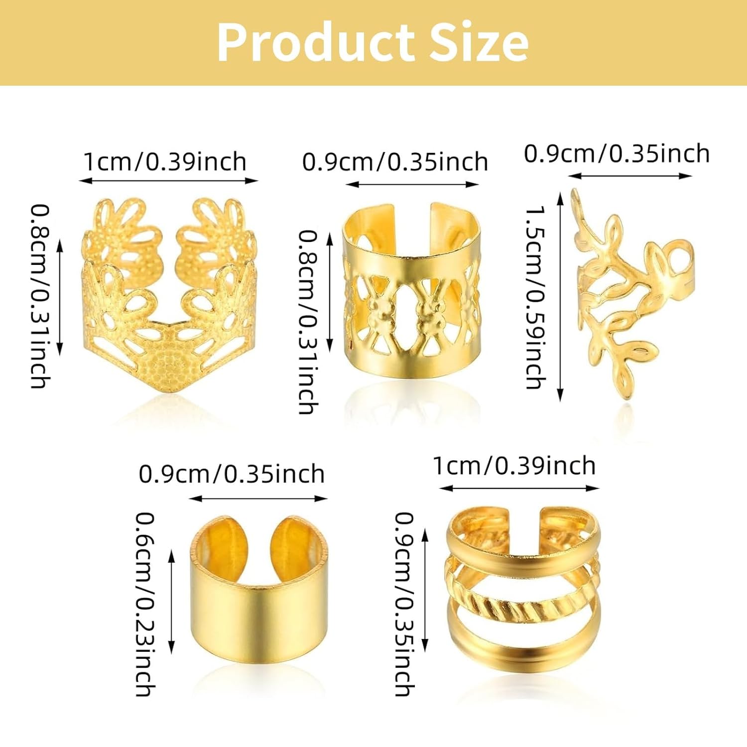 100PCS Hair Accessories for Braids, Gold & Sliver Hair Cuffs Adjustable Braids Hair Rings, 5 Style Dread Locks Accessories for Women, Men