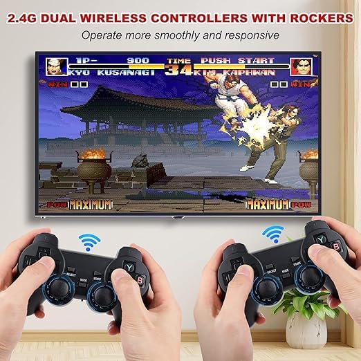 Complete Gaming Package: Includes 2.4G wireless game console with HDMI adapter, USB receiver, 2 wireless controllers, charging cable, and OTG adapter for instant gaming setup