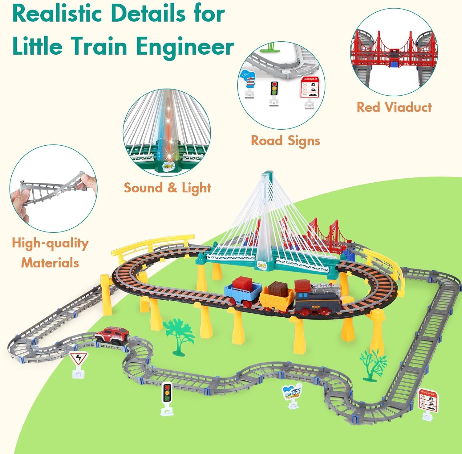 Perfect Gift for Kids: This exquisite train set is a great gift for kids who love trains and trucks, and it’s a perfect and creative indoor game. This train set makes a great gift for birthdays, holidays, Christmas, Halloween, or any special occasion. Suitable for boys and girls aged 3 to 8.