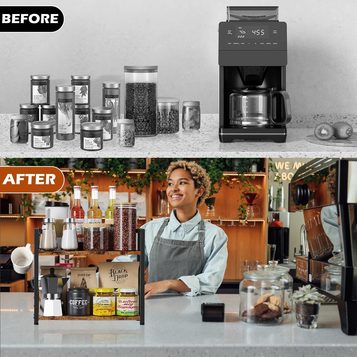 Multi-Purpose Countertop Organizer: Ideal for use in kitchens, coffee bars, bathrooms, living rooms, and office desks. Suitable for storing coffee accessories, tea bags, snacks, office supplies, makeup items, spice jars, and small decorative plants.