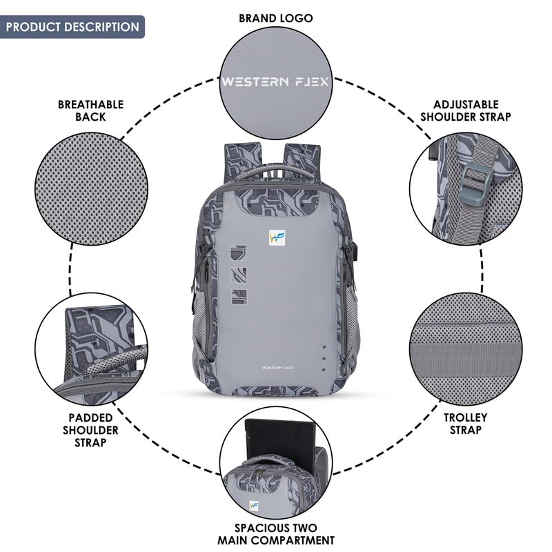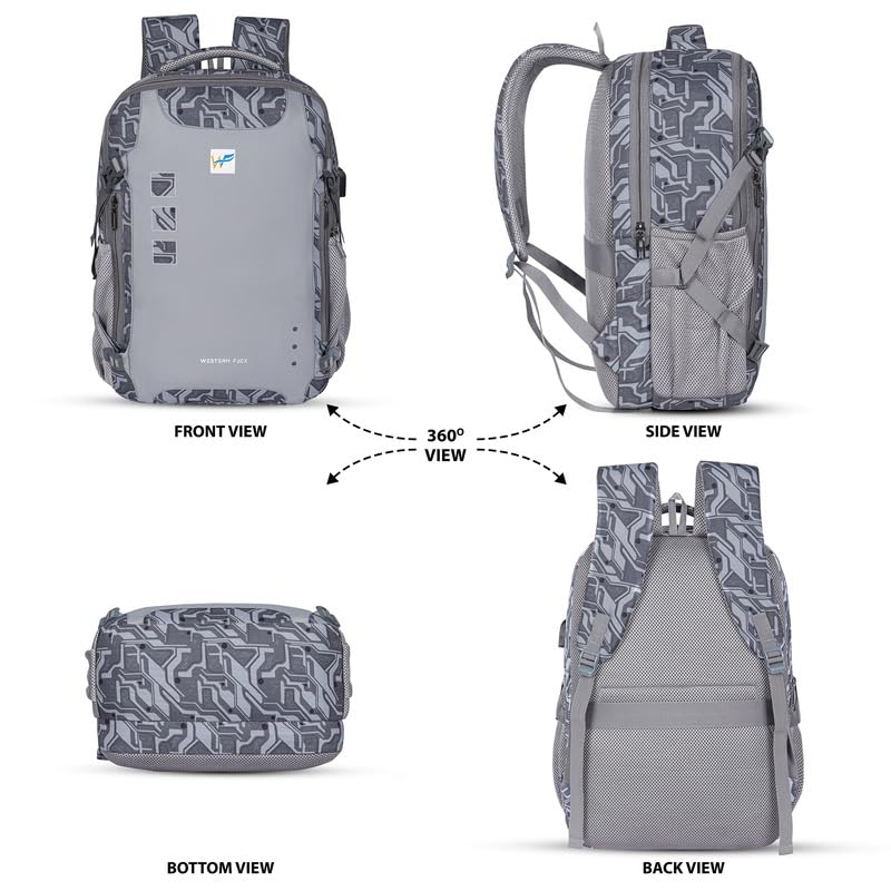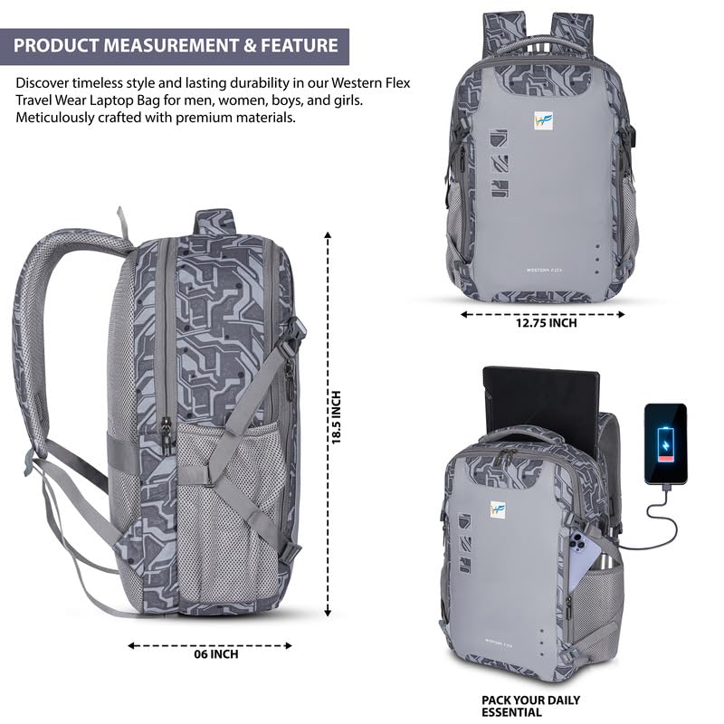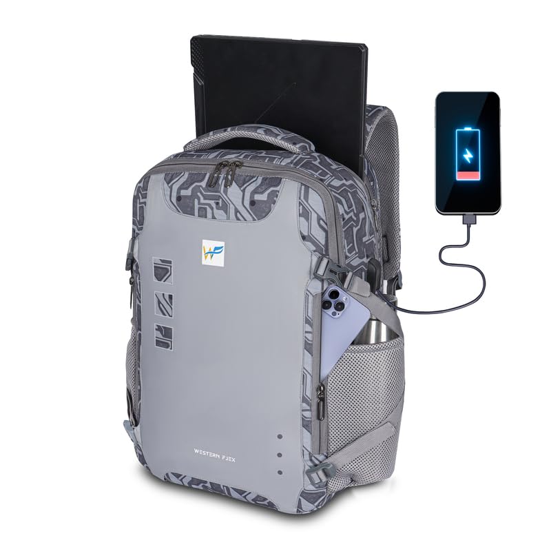 Introducing the Western Flex Matrix Backpack – where functionality meets premium style. Crafted with durable, high-quality materials, this 30-liter backpack is built to last through school days, college life, busy commutes, and exciting travel adventures. Its spacious interior easily fits a laptop, books, or travel essentials, while the external USB port lets you conveniently charge your phone while you’re on the move (power bank not included). Designed for both men and women, boys and girls, the Western Flex Matrix Backpack features padded shoulder straps and a breathable back panel, offering superior comfort even during long wear. The added trolley strap ensures you can easily secure your backpack to your suitcase, making it perfect for airport or train travel. Measuring 12.5 inches in length, 6 inches in breadth, and 18.5 inches in height, it delivers the ideal balance of capacity without feeling bulky. Whether you’re heading to class, the office, the gym, or your next adventure, the stylish and practical Western Flex Matrix Backpack is your reliable companion for everyday life and beyond. Choose Western Flex Matrix – Carry Style, Comfort, and Convenience Everywhere You Go!