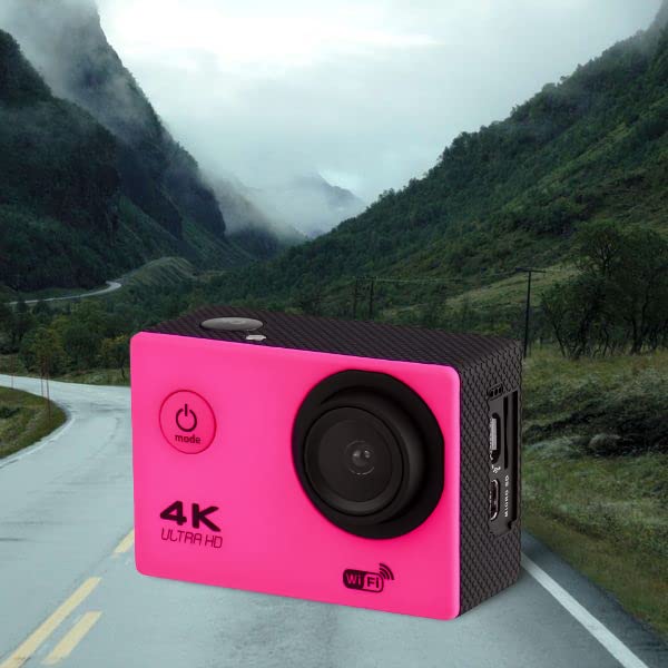 Pink 4K ACTION CAMERA- Connect to a WiFi network to access your camera via the App. UltraHD 2.0″inch display screen allows you to preview the video in the action camera.WIFI ACTION CAMERA- Connect to a WiFi network to access your camera via App. UltraHD 2.0″inch display screen allows you to preview the video in the action camera