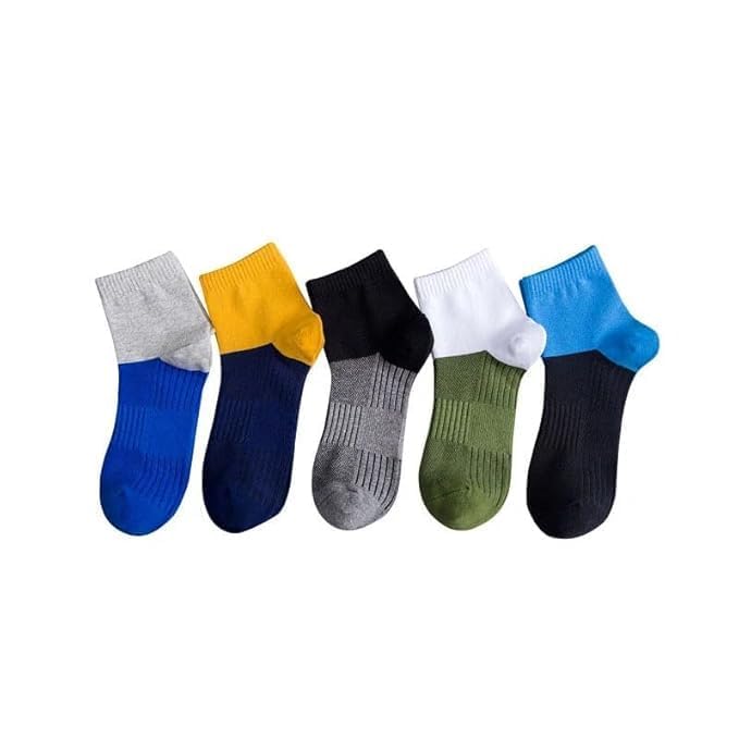 5 Pair socks for man, socks for woman fashion Striped Athletic Ankle Socks with Superior Arch Support, Anti Odour & Moisture Absorbent Combed Cotton Breathable Low Cut Quarter Socks (Free Size)