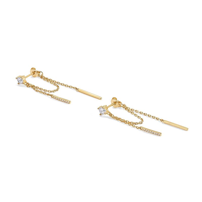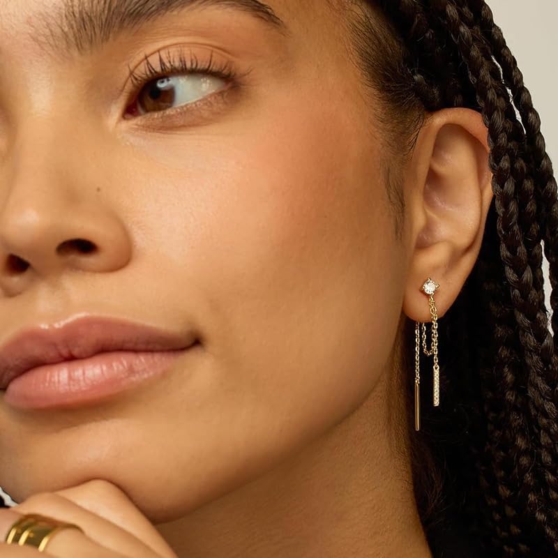 Designed for trendsetters, these double-layered ear chain earrings bring effortless edge and elegance. The delicate chain drapes gracefully while the 14K gold plating and anti-tarnish finish ensure a lasting, chic look for parties or casual styling.