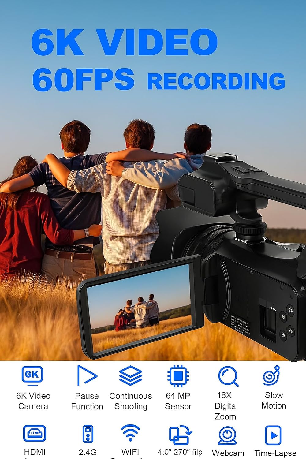 Acuvar 4K 64MP Video Camera Camcorder Vlogging Camera for YouTube 60FPS 18X Zoom Video Camera, WiFi, Webcam, External Shotgun Mic, 64GB SD Card, 36 Beads LED Light with 3 Brightness Modes