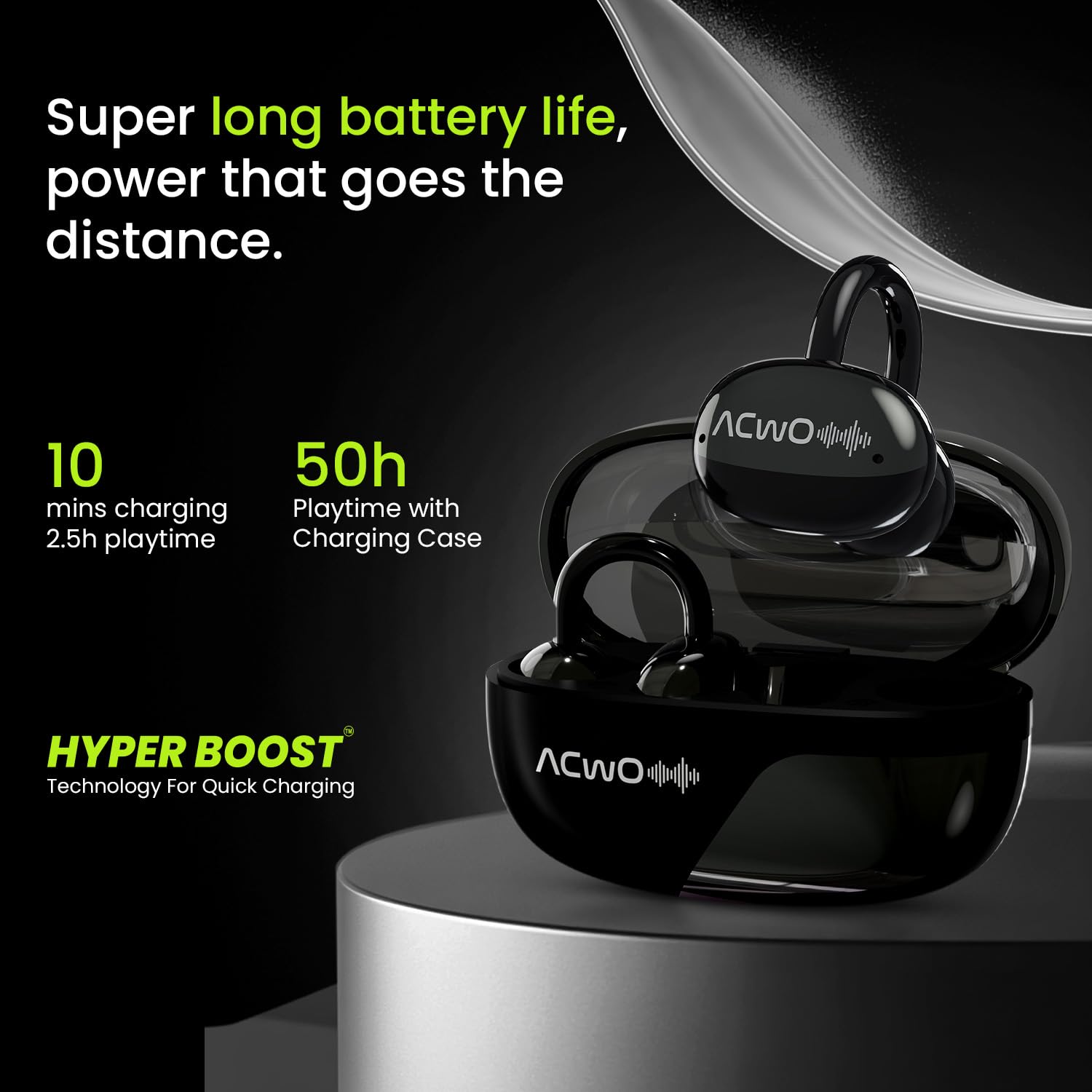 ACwO DwOTS Flow Open-Ear Earbuds | X-Fidelity Sound | AI-ENC Mic | Dual Mode (Music & Gaming) | 50H Playtime | Fast Charging | IPX5 | Bluetooth 5.3 – Pearl Black