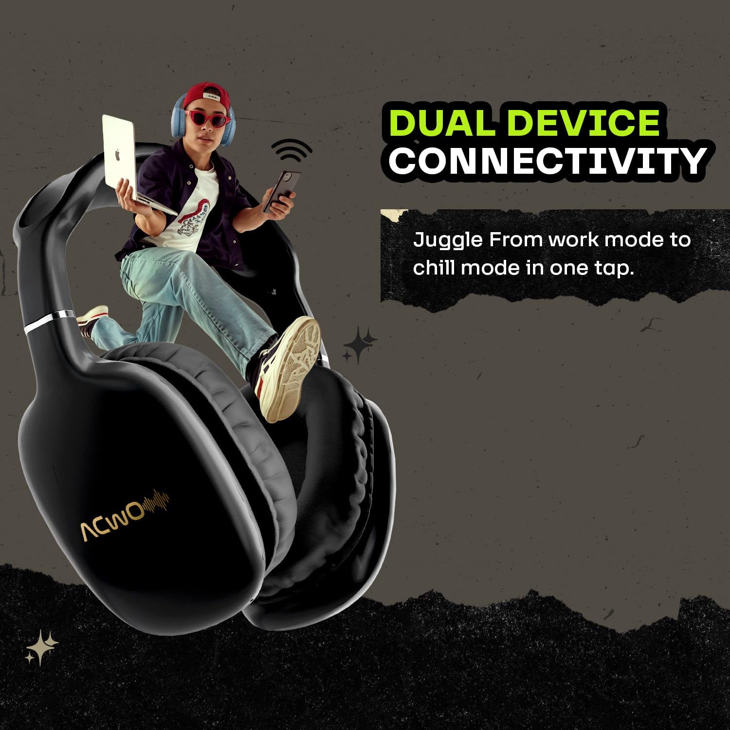 ACwO Twister 515 Wireless Over-Ear Headphones | X-Fidelity Acoustics | 40mm Bass BooMX™ Drivers | ANC 25dB | Dual EQ Modes | 65H Playtime | 45ms Low Latency | AI-ENC Calls | IPX5 – Charcoal Black