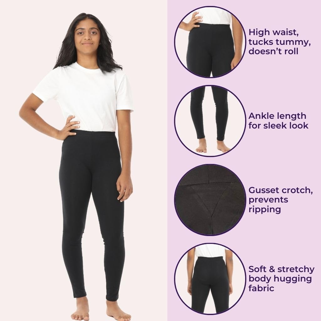 Adira | Leggings for Teen Girls | Teen Leggings | High Waist | Ankle Length | Soft Cotton & Elastane Blend | Gusset Crotch Prevents Ripping | Non-See-Through