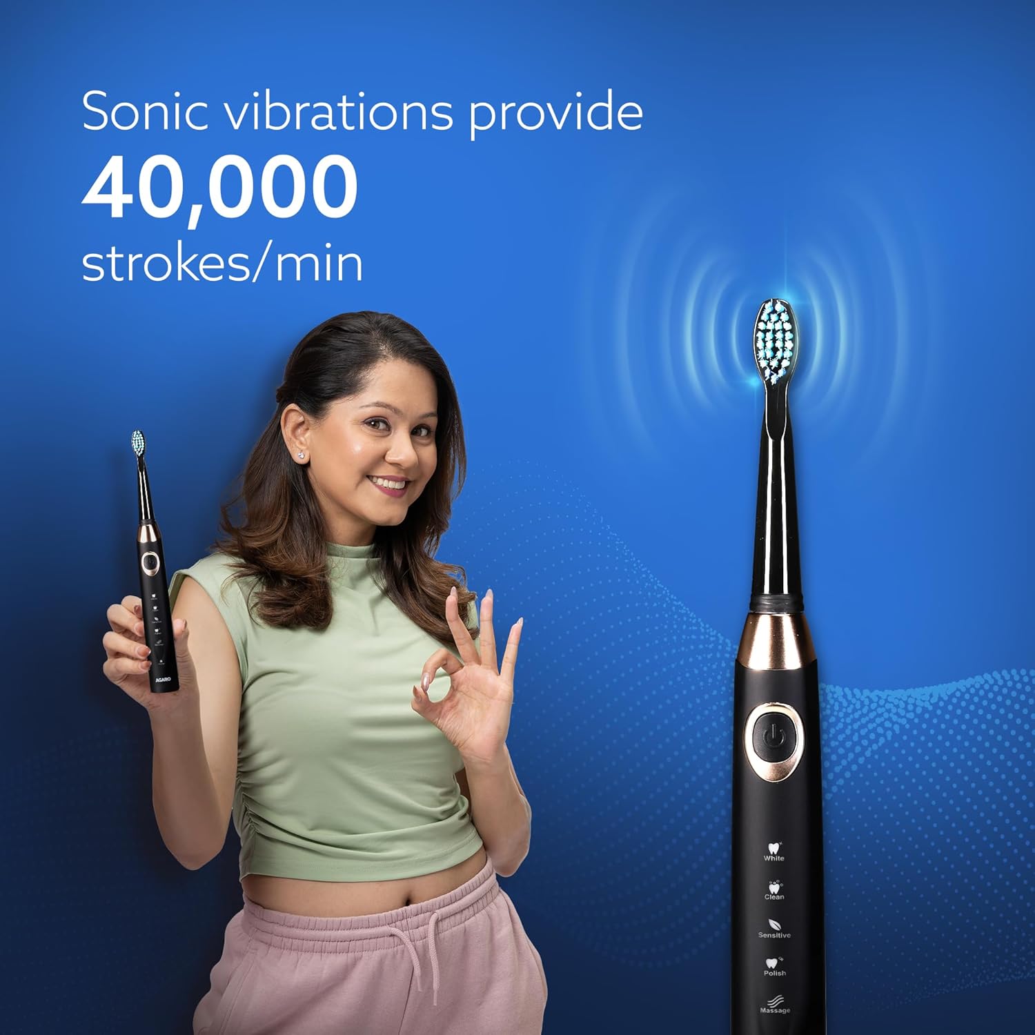Superior Sonic Technology: Generates 40,000 Strokes per minute, demolishing deep tooth dirt effectively