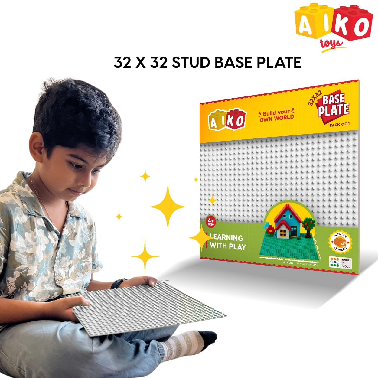 AIKO Classic White Base Plate – 32 x 32 Studs (10″ x 10″) | Durable ABS Plastic Building Base | Sturdy Foundation for Construction Play | Compatible with Major Block Brands | Ideal Gift for Kids 4+