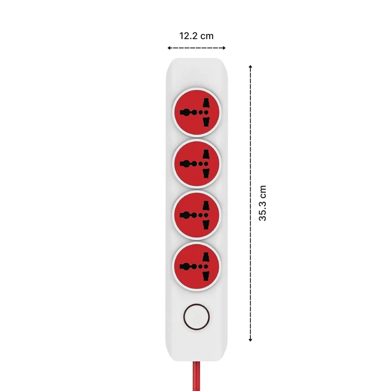 AILKIN 4 + 1 250 Volts Power Strip Extention Board with Master Switch, Indicator, Safety Shutter & 4 International sockets, Extension Cord for Home Appliances, Red & White Colour