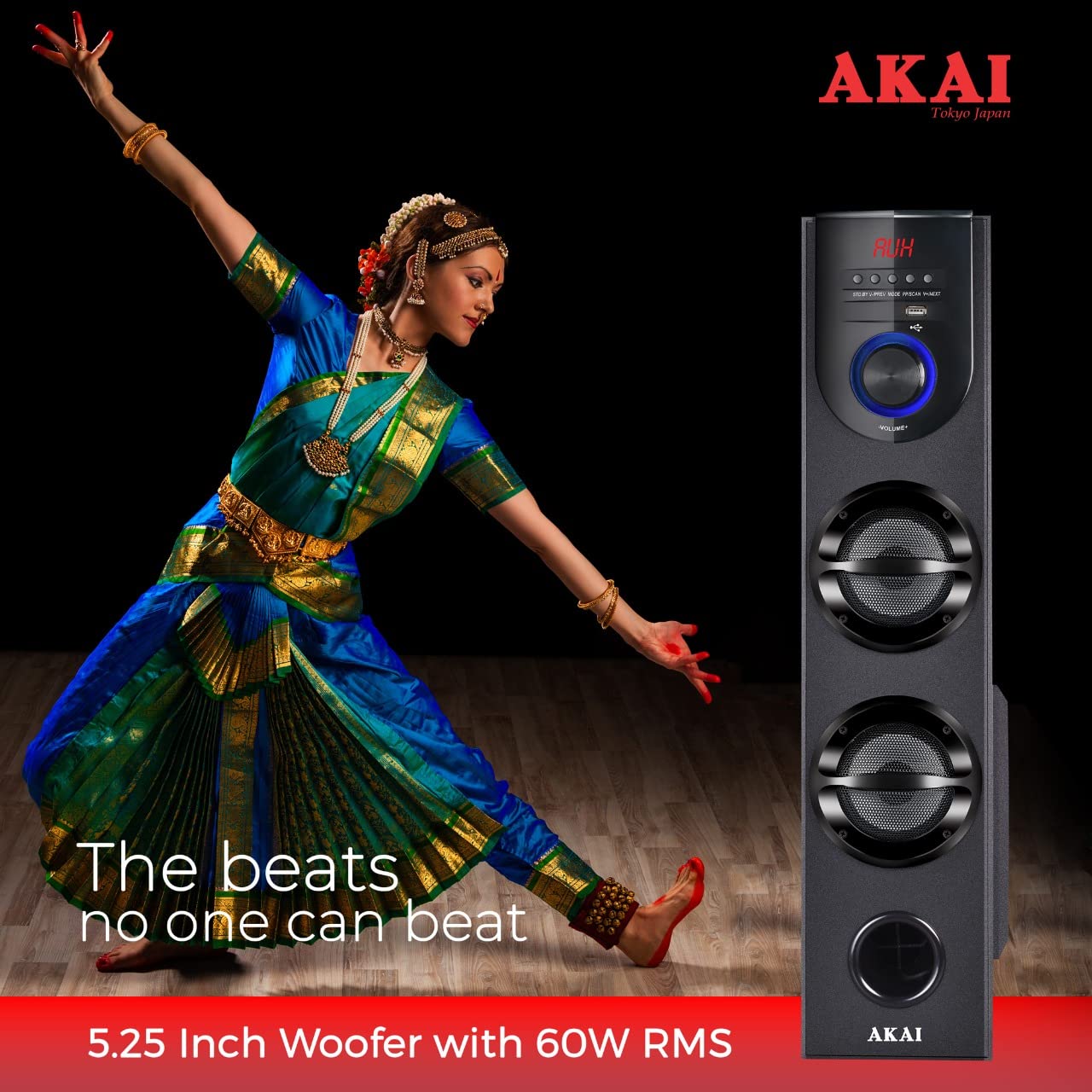 AKAI Tower Bluetooth Wireless Speaker 60W RMS with Remote – 1 Year Warranty | Home Theater System 5.25″ Woofer | Wireless Mic | Karaoke, LED Display, Deep Bass | Supports TV, PC & Smartphone (HA-TS60)