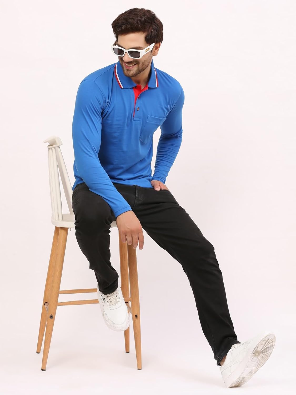 ALARM Men’s Cotton Rich Polo T Shirt | Collar Tshirts | Full Sleeves | Plain-Regular Fit | Pocket T Shirt