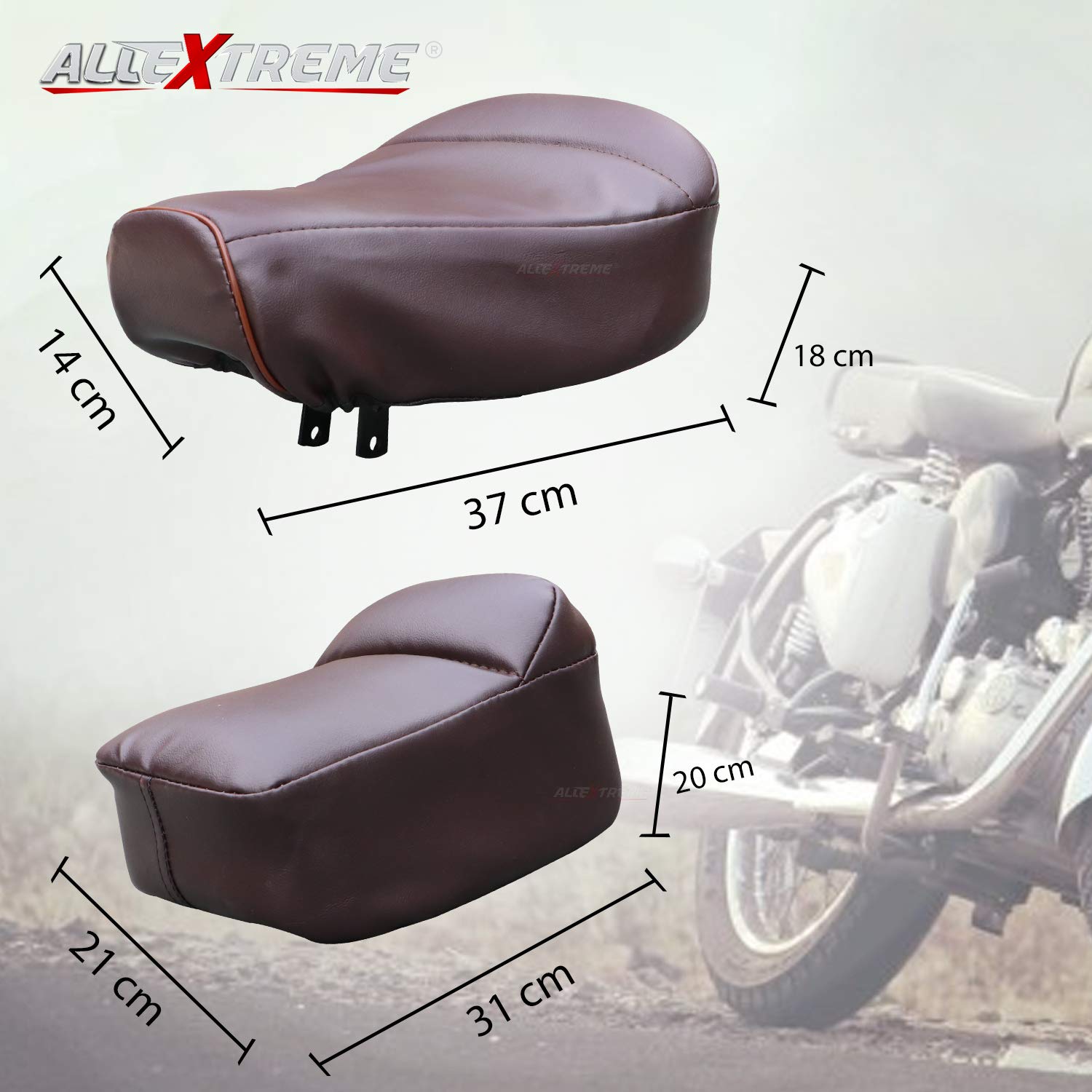 Product Description AllExtreme PU Leather Seat Cover with AllExtreme Bullet Classic 350cc and 500cc Bike Seat Cover. It’s detailing on the surface and sides will give your bike a sleeker look and contrast stitch lines add to the overall appeal. It is custom made for your bike seats to give a snug fit and do not slip or move while riding. Features: Designed to fit with original factory styling. High-grade, weather-resistant material. Colour: Brown Note: Please allow 1-3cm difference due to manual measurement. COMPATIBLE WITH: Bullet Classic 350cc and 500cc.