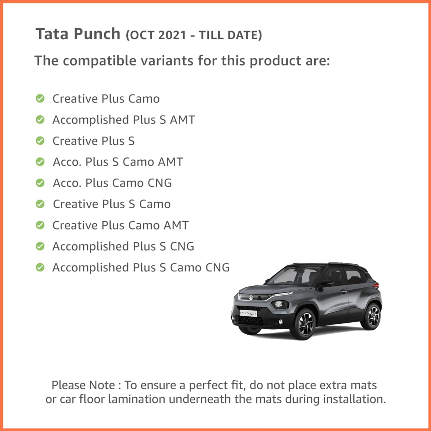 “3D Precision Fit Custom-designed using 3D laser scanning to perfectly match the floor contours of the Tata Punch—no gaps, no sliding.”