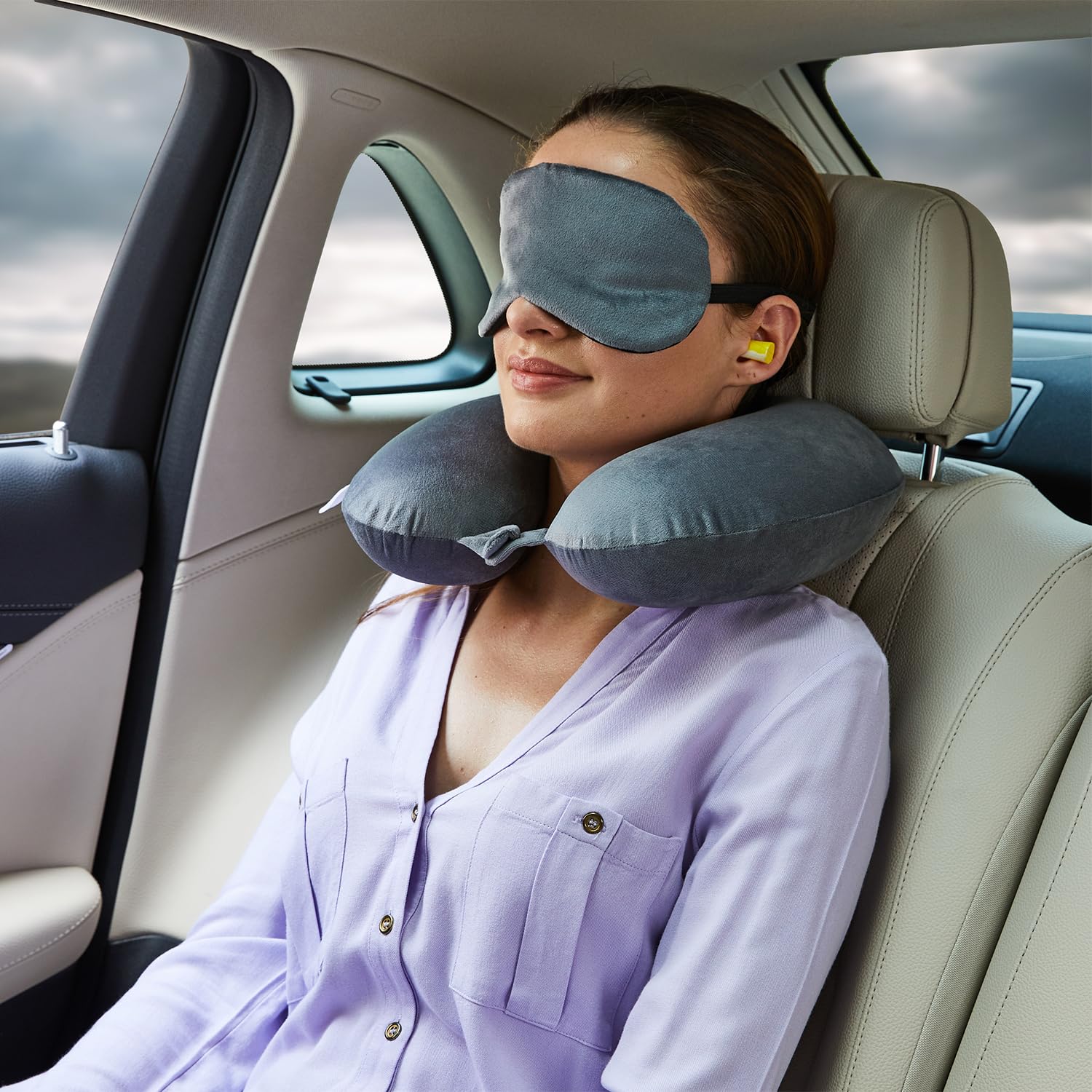 Grey Velvet Cover – Soft, Breathable & Washable – The ultra-soft velvet fabric feels smooth against your skin while allowing breathability for extended wear. The removable cover is machine washable, offering easy cleaning after every trip.