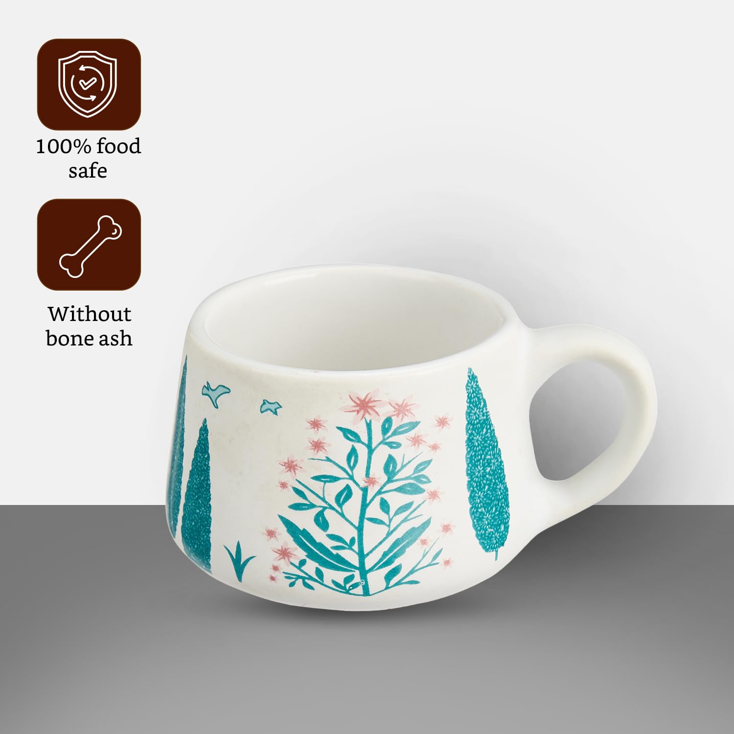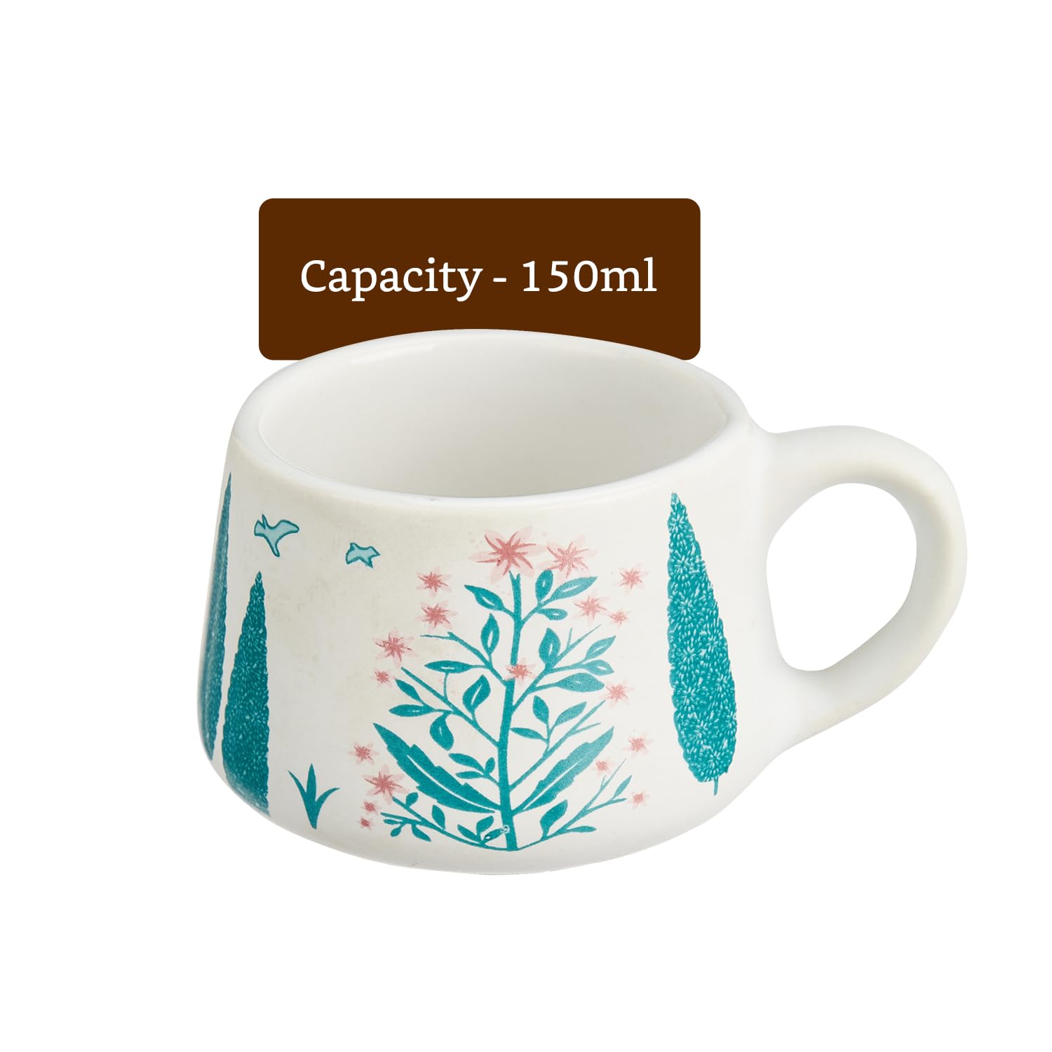 Amazon Brand – Solimo Green Peafowl Ceramic Tea Cups | Set of 6 | 150ML | Microwave & Dishwasher Safe Coffee Cup | Perfect for Daily Use, Office Parties, and Special Occasions