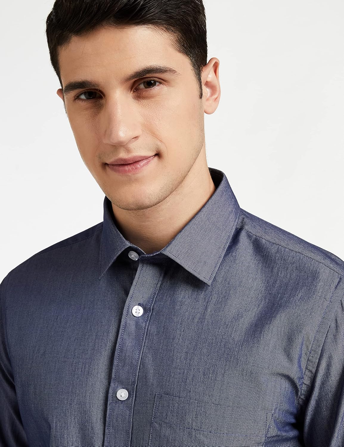 An Amazon brand, Symbol is built on the pillars of quality, reliability and affordability, offering a range of lifestyle essentials that help you look good every day. This Symbol men’s shirt, is woven from cotton blend in a two tone self structure lending it a premium look for special occasions. This full sleeve shirt with semi cut away collar comes in an easy regular fit. Update your look with solid color formal trousers and black leather shoes.