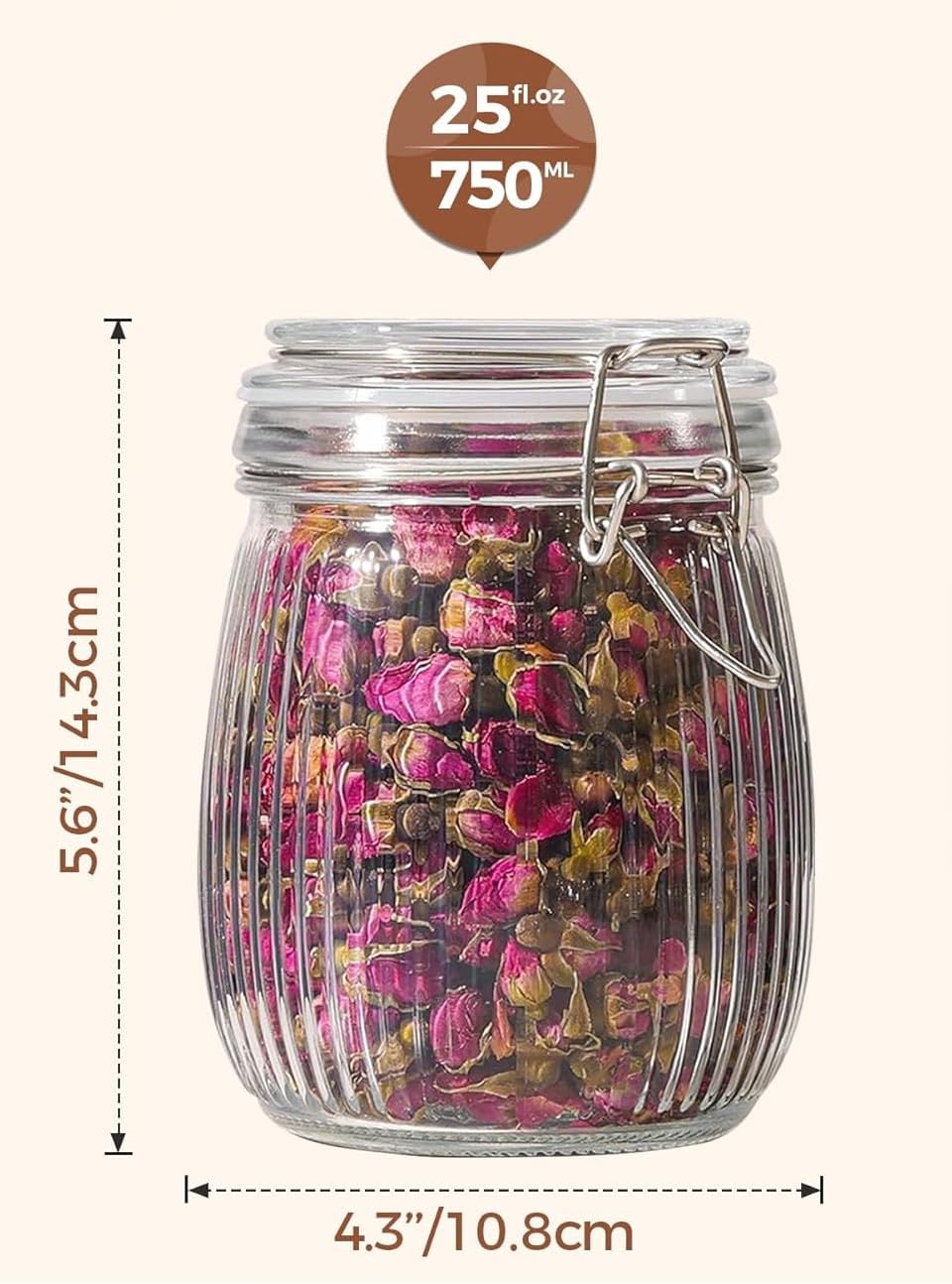 Ash & Roh Airtight Transparent storage jar with Rubber Seal lid and Clip Lock – Perfect for Kitchen Canning, Fermenting, and Storing Dry Food, Spices, Tea, Snacks, Sugar, and More (pack of 3, 750 ml)