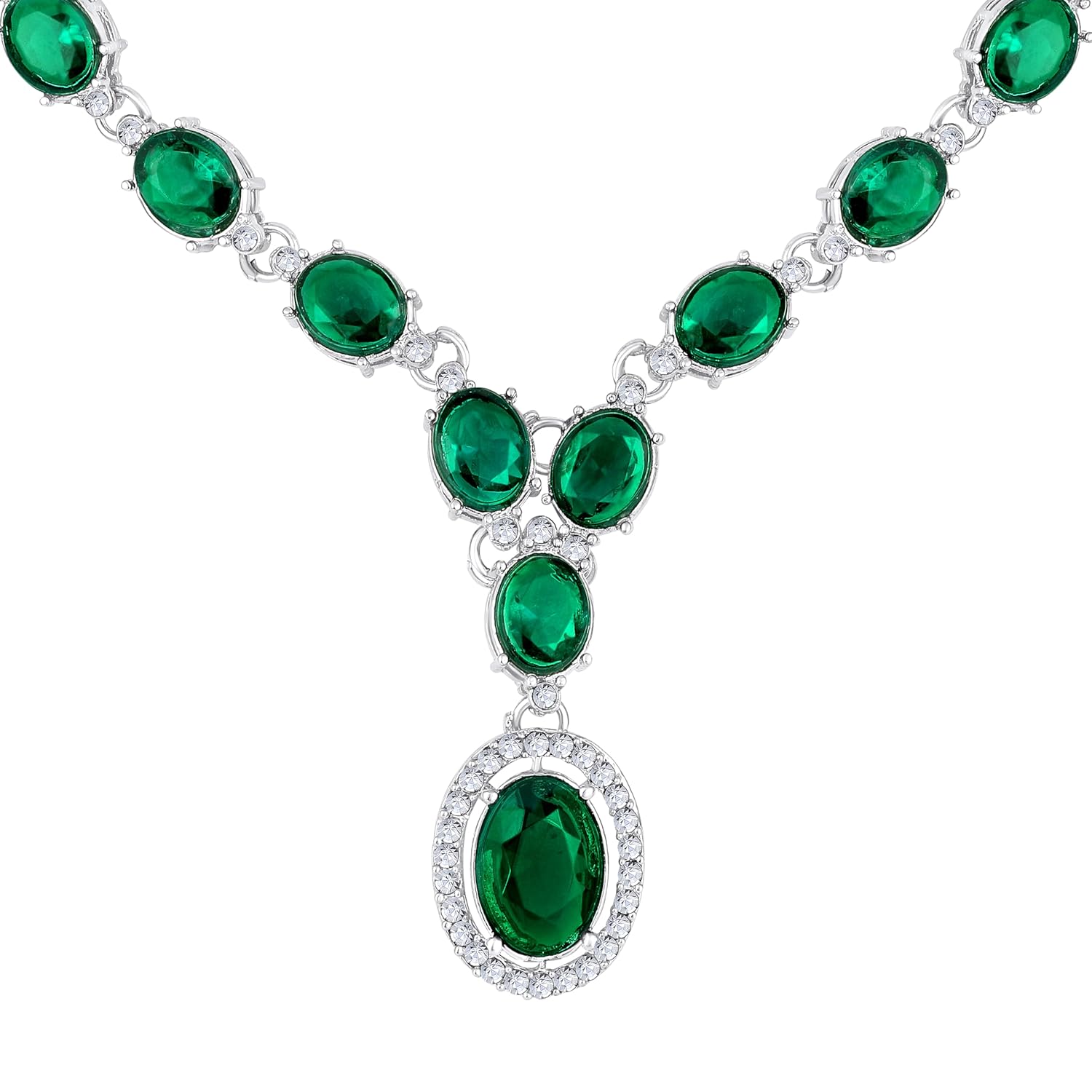 Atasi International Silver Plated Kundan Style Crystal Necklace Earrings Maang Tika Set for Women – Party & Wedding