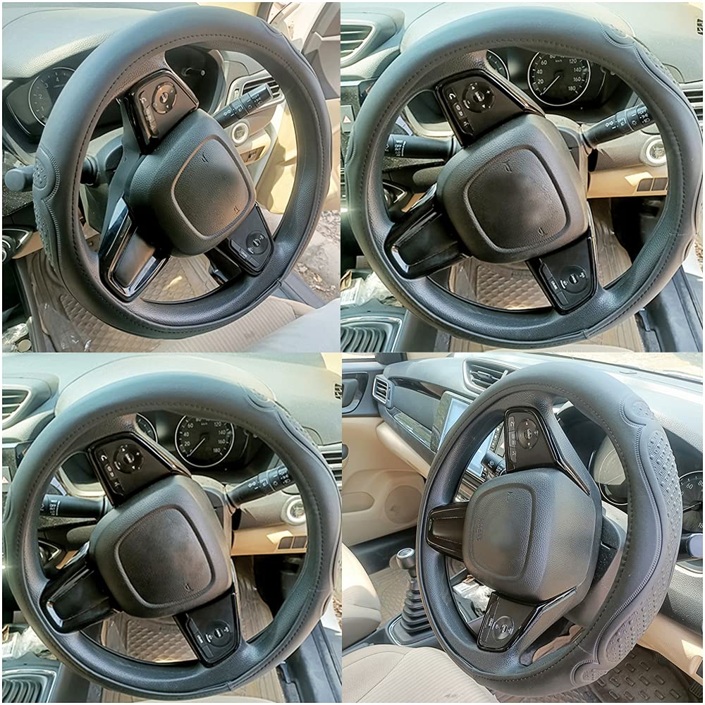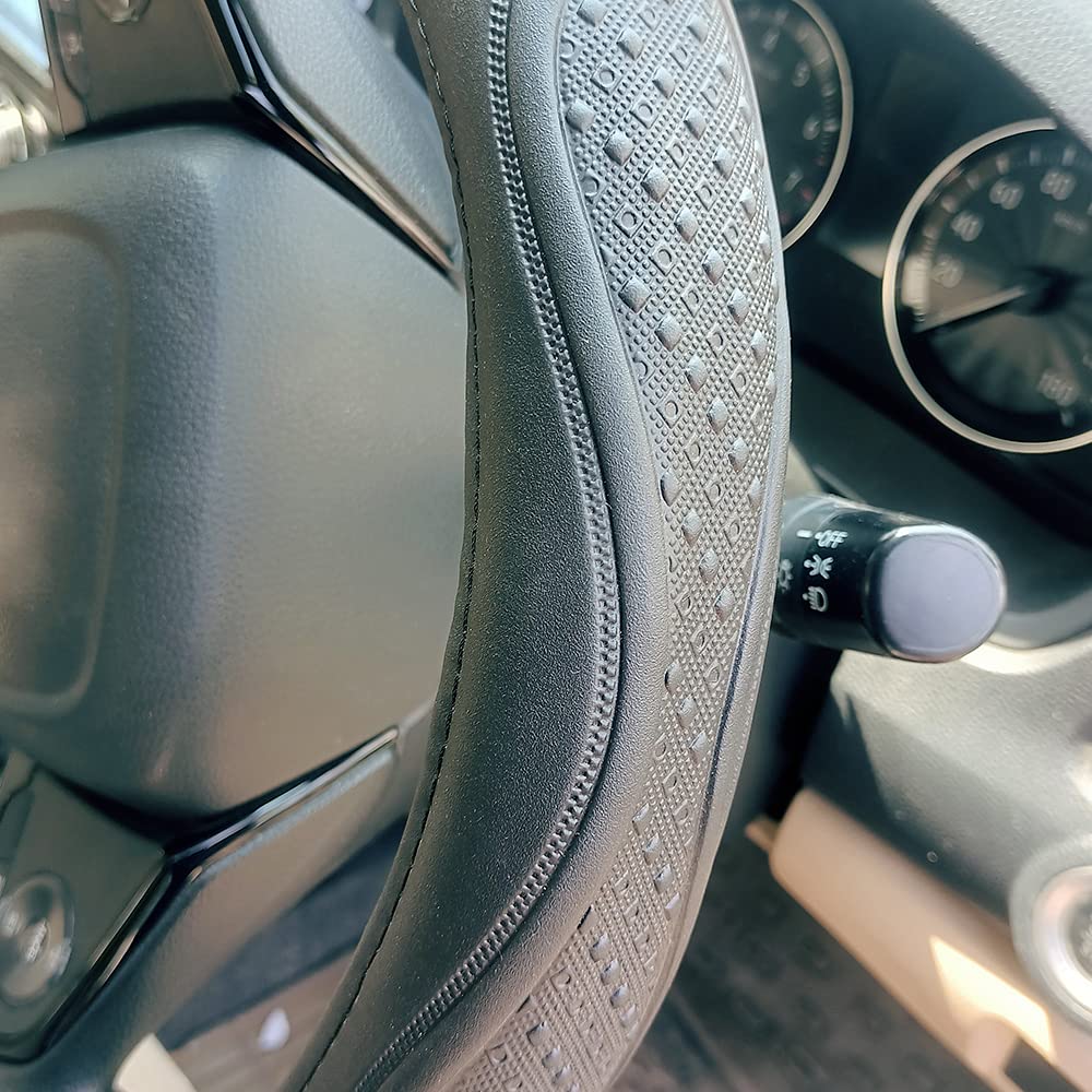 Steering Wheel Cover UniversalGenuine PU Non-Slip Natural Rubber Well PaddedGrip Breathable Leatherite
