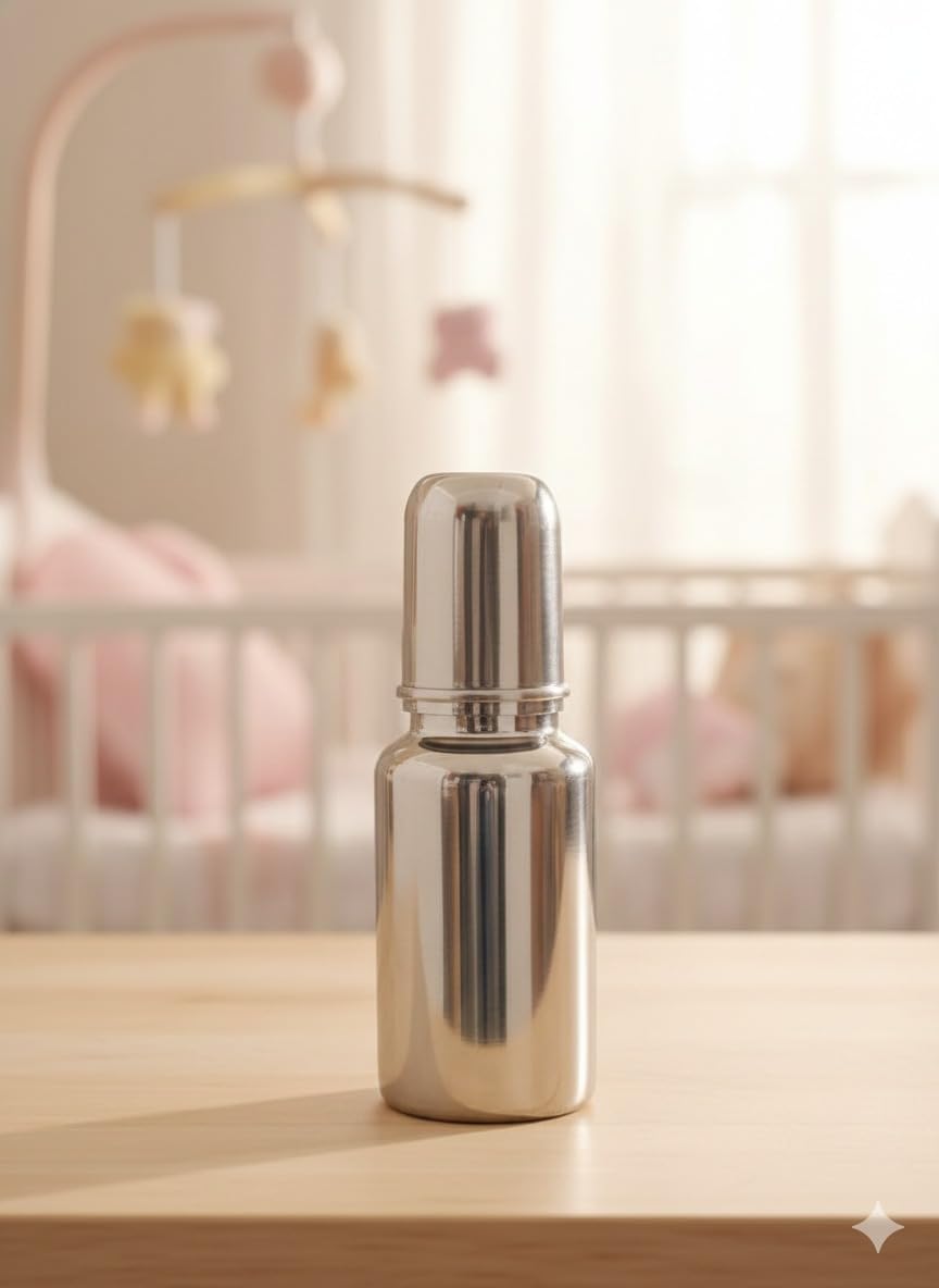 The Khandelwal Traders Baby Feeding Bottle is thoughtfully designed to make feeding time comfortable and safe for your little one. This 250ml stainless steel bottle combines durability with functionality, offering a reliable feeding solution for infants and babies. The wide neck design makes filling and cleaning remarkably easy, whilst the soft silicone teat provides a gentle, natural feeding experience that babies readily accept. The integrated anti-colic valve helps reduce air intake during feeding, minimising discomfort and fussiness. Crafted from high-quality stainless steel, this bottle is both BPA-free and PFOA-free, ensuring your baby’s health and safety remain the top priority. The stainless steel construction also offers excellent temperature retention and is more resistant to breakage compared to glass alternatives. This feeding bottle is ideal for parents seeking a durable, safe, and practical feeding solution that will serve their baby well through various stages of infancy. Each purchase includes one bottle, making it perfect for trying out or adding to your existing collection of feeding essentials.