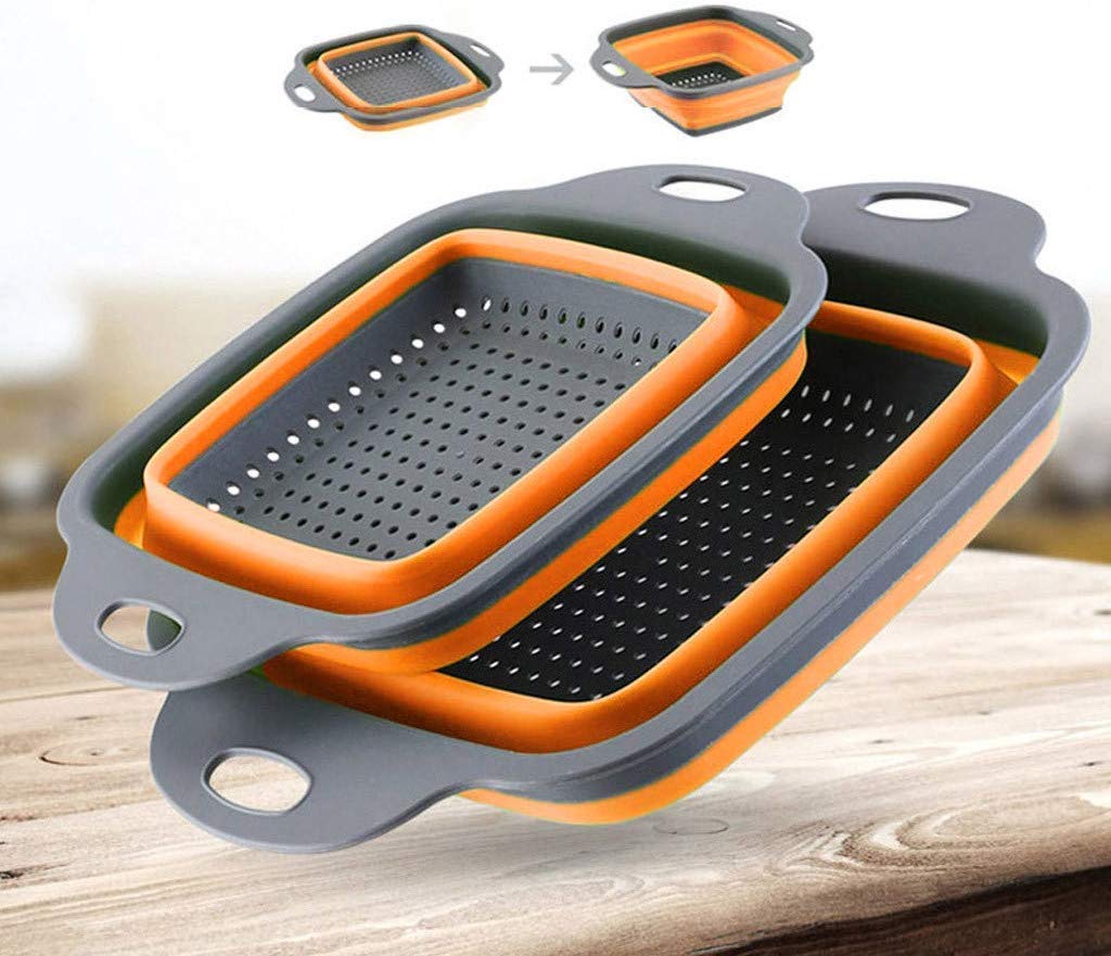 Baskety Collapsible Colander Pack of 2 Collapsible Set,Food-Grade Silicone Kitchen Strainer Space-Saver Folding Food Strainer Colander (2 Pack Orange)