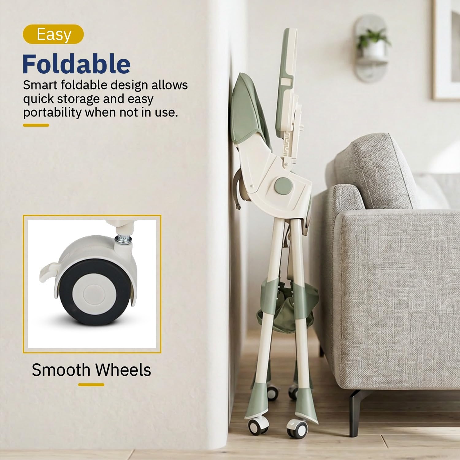 Easy to Fold: The high chair for kids folds flat and stands upright, saving space in small homes.