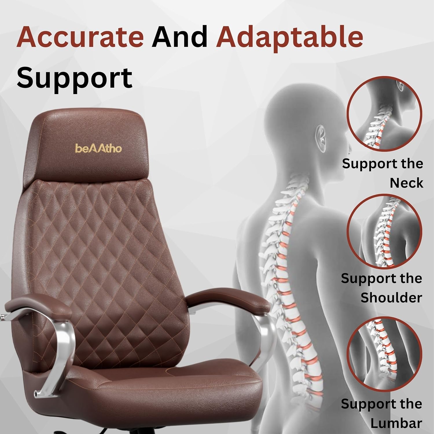 beAAtho® Zen Leatherette Executive Office Chair | High Back Revolving Chair with Integrated Lumbar Support | Ergonomic & Comfortable Seating | 3-Year Warranty by beAAtho | Adjustable Height | Brown