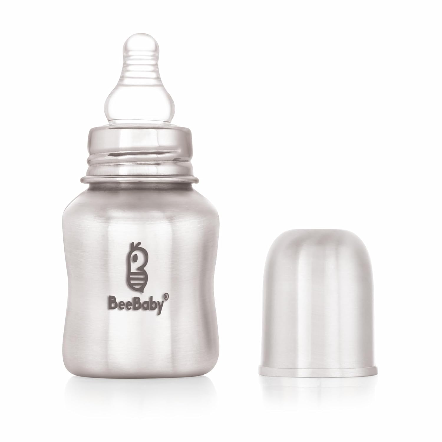 BeeBaby Mighty Slim Neck Stainless Steel Feeding Bottle 120ml with Anti-Colic Nipple | 304 Grade SS Baby Bottle | BPA-Free, Leak-Proof, Travel-Friendly Milk Bottle for Infants & Toddlers – 4 Months+