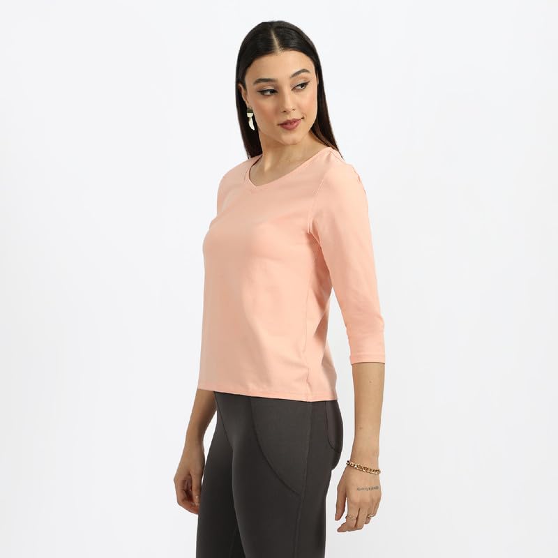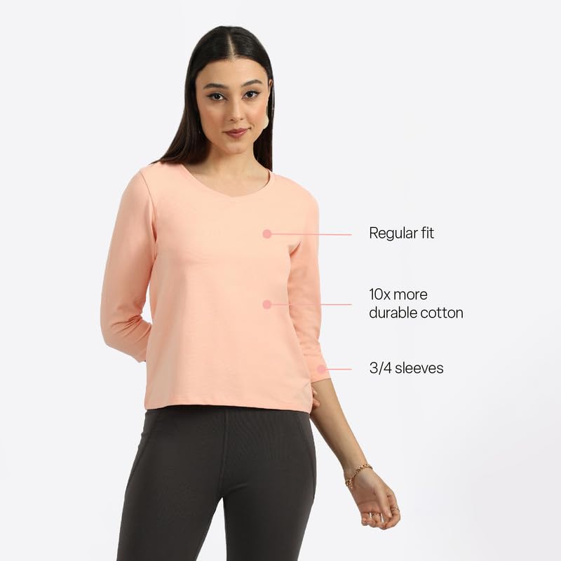 Blissclub brings you The Last Tee you will ever need made with CottonFlo fabric that is 10x more durable than regular cotton. Designed to last for 750+ days, The Last Tee retains its shape and colour despite being washed 10 times more than the industry standard. CottonFlo comprises 95% cotton and 5% spandex for some comfortable stretch. CottonFlo has been pre-shrunk – so you don’t have to worry about your tee shrinking when you wash it. The fabric of CottonFlo has a double bio finish which helps maintain the surface extra clean. Also, there is no moisture buildup – round the clock comfort. The Last Tee is made with cotton, so it has insulating properties – you stay warm when it’s chilly & vice-versa. Also, it feels super soft. The Last Tee – V-Neck has 3/4 sleeves, a V- neck and a regular fit. It is ideal for your low impact activities. We, at Blissclub, are on a mission to engineer products that enable Indian women to move intentionally and unabashedly.