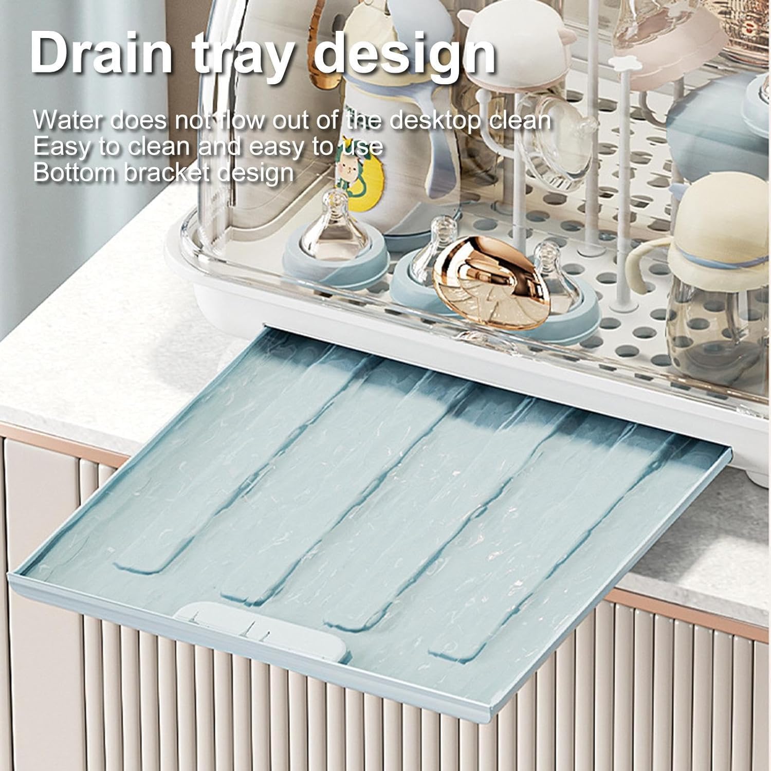 ❤【Practical Design】This baby bottle drying rack space saving feature a durable case, transparent seal lid, detachable drainer racks, cutlery holder, and built-in drawer drain board to allow you to efficiently dry, store and organize baby nursing bottles, pacifiers, breast pump parts, cutlery, and other accessories. Easy to use and dishwasher safe.