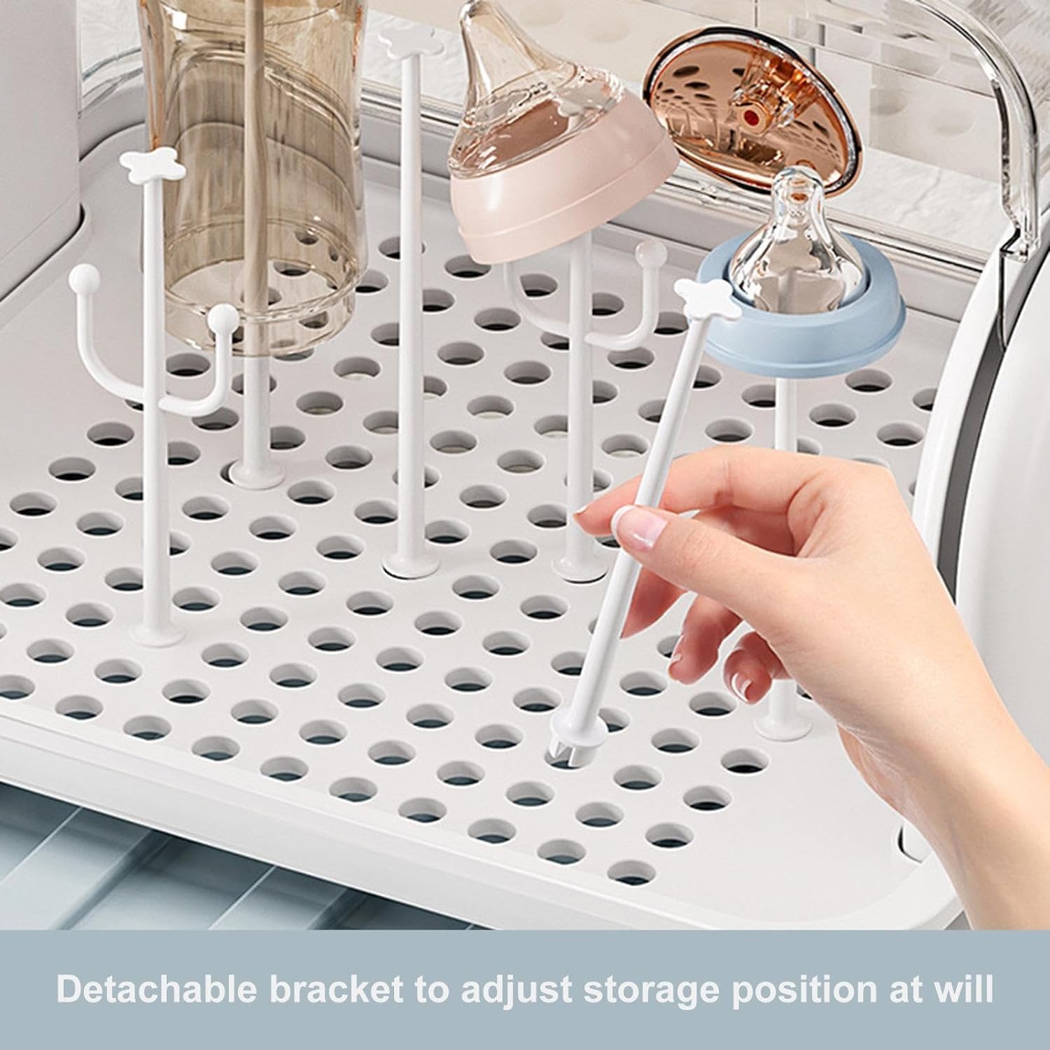 Bottle Sterilizer and Dryer Small Box, Bottle Drying Rack Dustproof Bottle Rack Dryer Portable with Cover and Removable Drainer Tray Storage for Baby Bottles Accessories