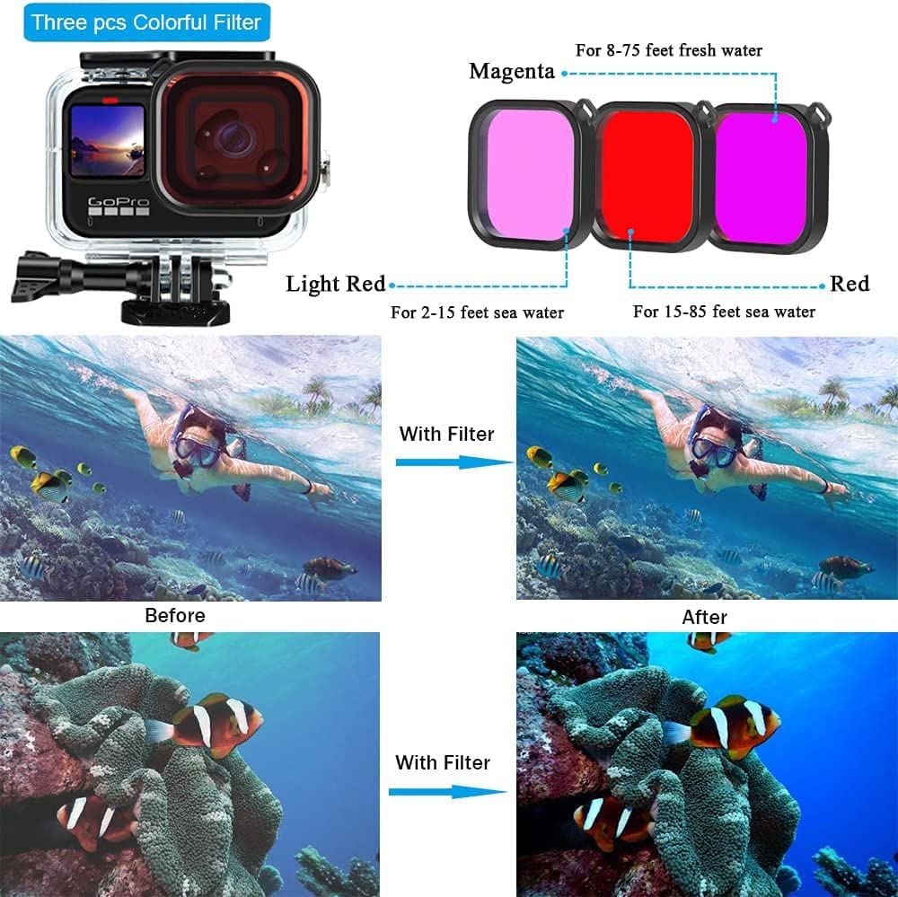 This Accessory Kit additionally contains the Waterproof Housing, Silicone Case, Glass Screen Protector for Gopro11 Gopro10 Gopro9.