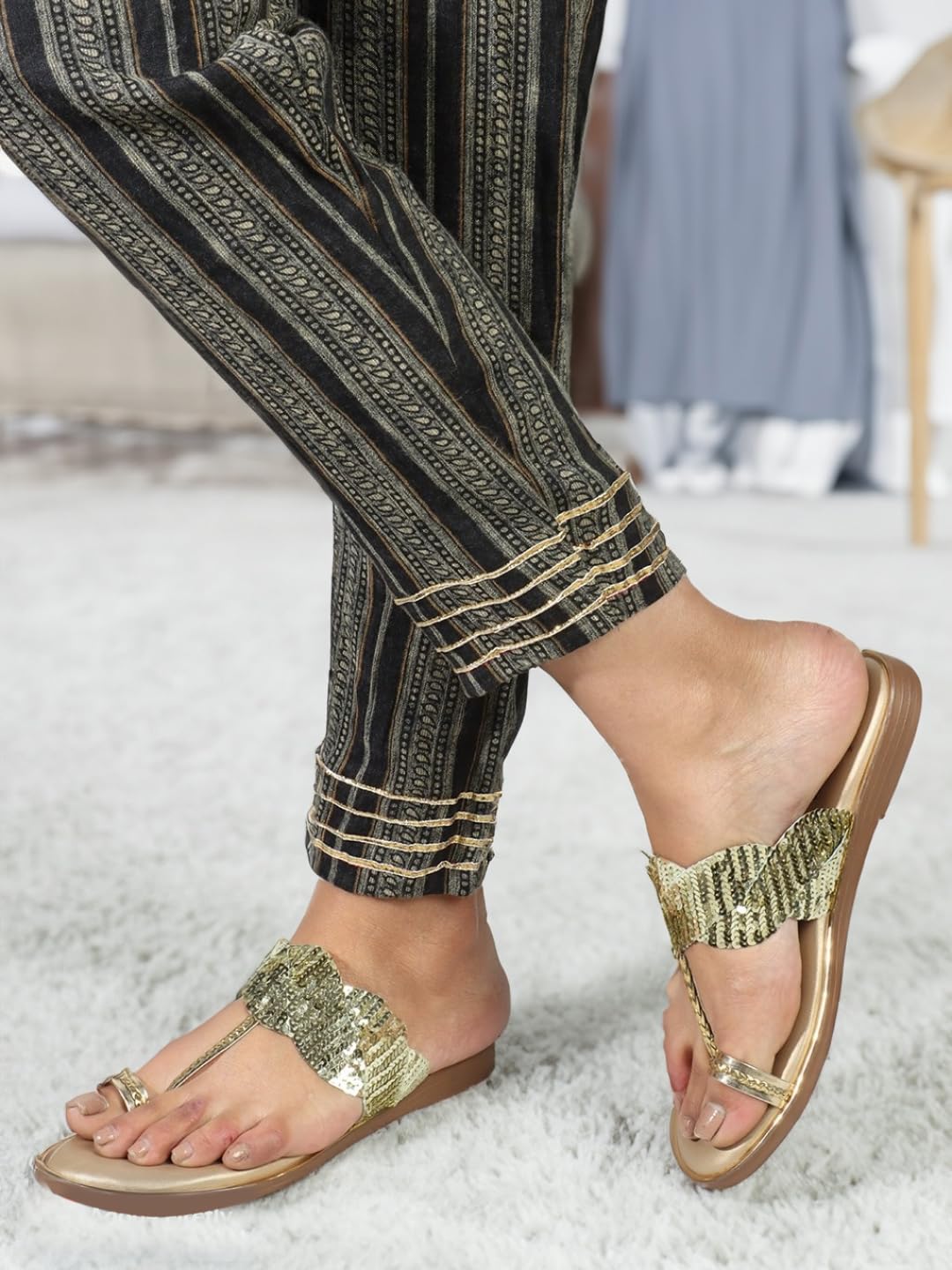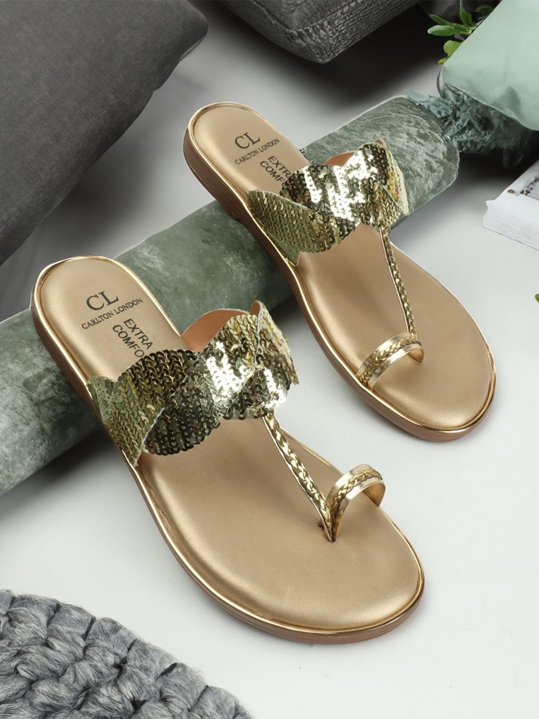 Carlton London women’s Stylish Embellished Toe Ring Flat Comfortable Sandals