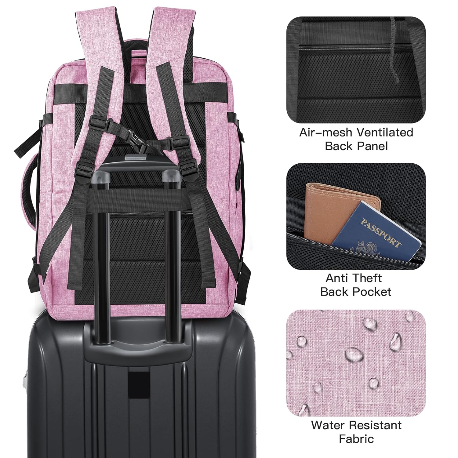 Carry On Backpack, 40-50L Travel Backpack, Expandable Luggage Backpack for Men & Women