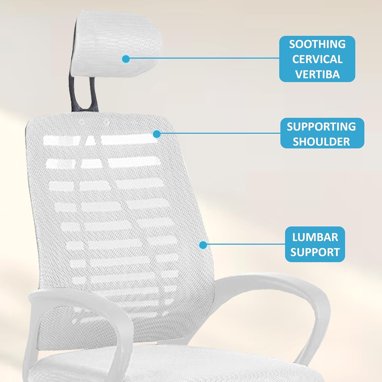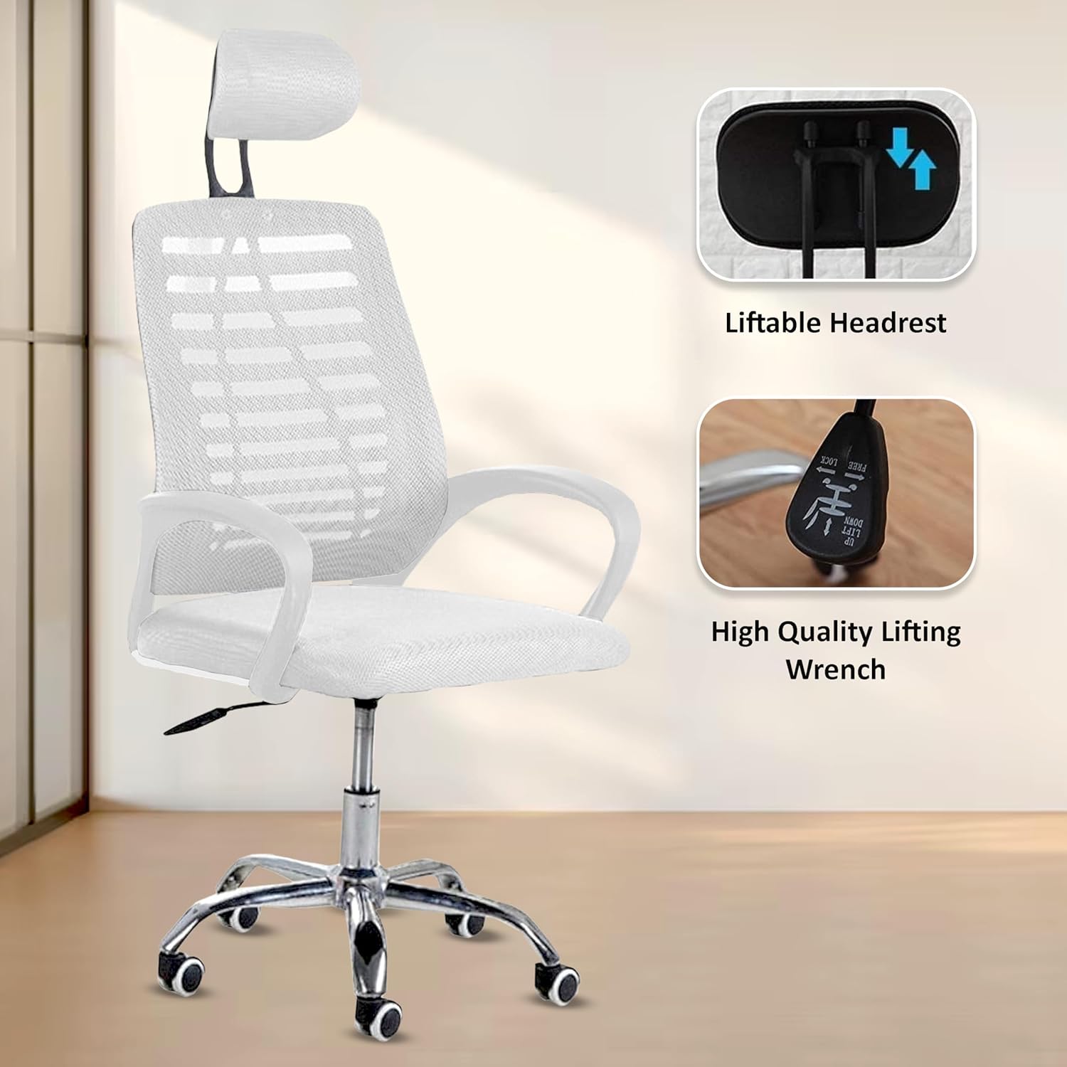 Casa Copenhagen,Mesh Office Desk,Rocking Ergonomic Computer Chair Adjustable High with Headrest and Comfortable Armrest Swivel Chair – Pearl White & White Handle