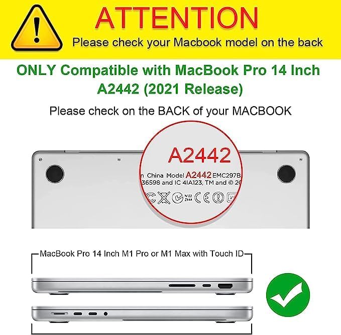 Specifically designed for MacBook Pro 14 Inch 2024 2023 2022 2021 Release A3401 A3185 A3112 A2992 A2918 A2779 A2442 M4 Max / M4 Pro / M4 / M3 Pro / M3 Max / M3 / M2 Pro / M2 Max / M1 Pro / M1 Max Chip with Liquid Retina XDR Display & Touch ID. Not Compatible with other model laptops.