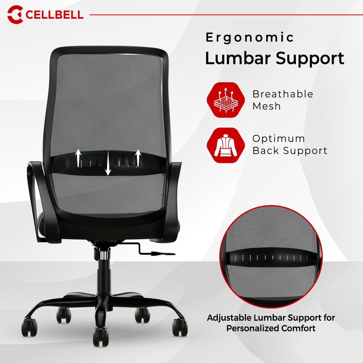 CELLBELL Desire Pro Mid Back Mesh Office Chair Adjustable Study Chair/Computer Chair with Revolving Seat, Stylisk Backrest, Lumbar Support, Metal Base for Work from Home (Black)