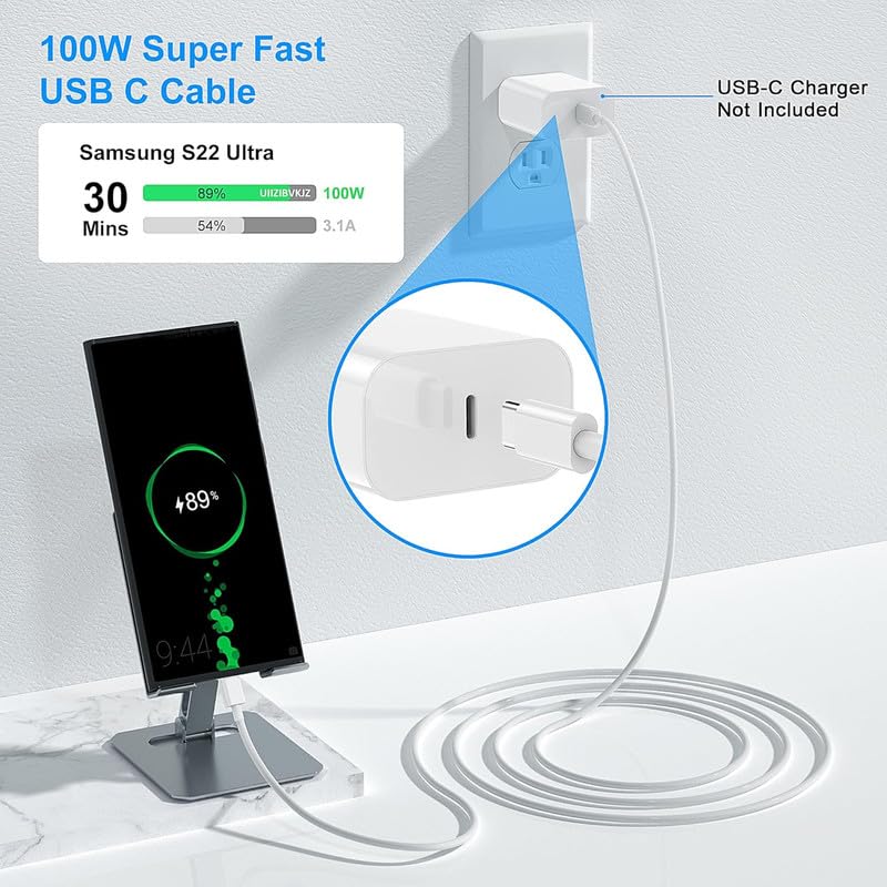 ✅【Durable and Elegant TPE Design】The port head of Tonsiny Dual c charger cable for samsung s22 charger cable is designed with TPE injection molding technology, It can withstand at least 10,000 cycles of 90-degree bend test and plug-in tests. With Tinned copper wire features anti-oxidation and anti-rust, 100w usb c to usb c charging cable can offer longer service life and Suitable for different places daily charging requirements, no matter at home, in your car, in the office or while travelling