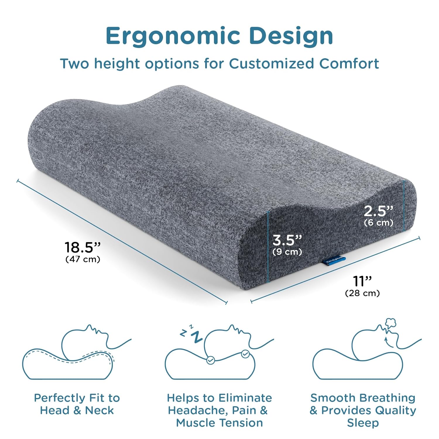 ✔️ Dual-Height Contour: Supports both back and side sleepers—maintains balanced sleeping posture.