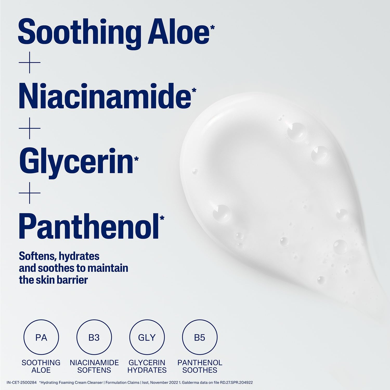 Cetaphil Hydrating foaming Face Wash, Cream to Foam Cleanser 236ml | Niacinamide, Pro-Vitamin B5 & and Aloe for Gentle Cleansing