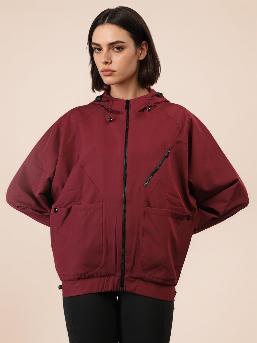 CHKOKKO Womens Stylish Oversized Windcheater Hoodie Jacket with Zip Closure Lightweight Sportswear for Running Travel Hiking Outdoor and Rainy Season Wear