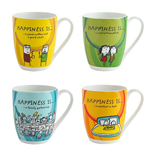 Clay Craft Ceramic Milk Mug – Set of 4, Multicolor, 340ml, Standard (HS-MM-OXFORD-4PC)