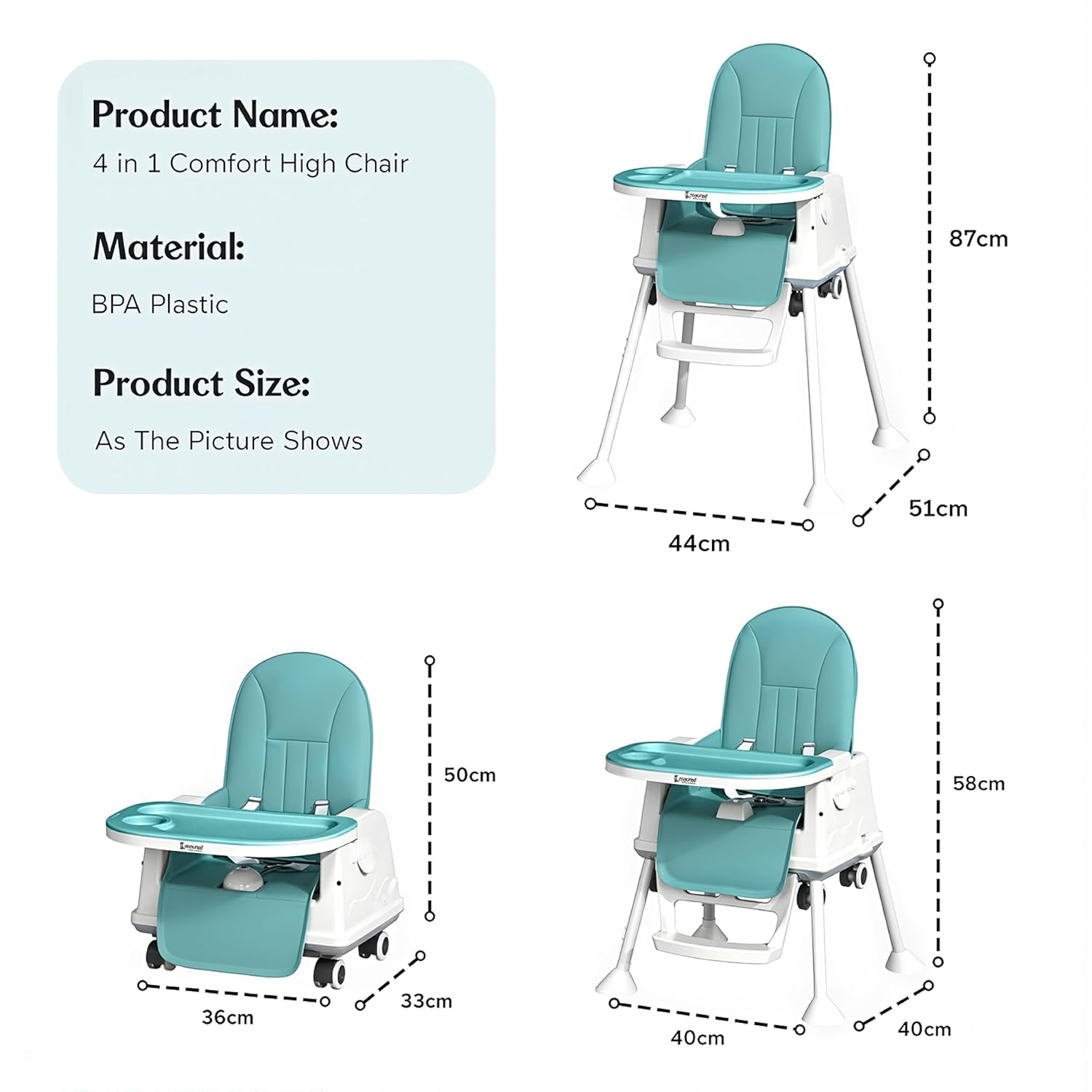 3-in-1 Convertible Usage: Transforms into a feeding high chair, booster seat, or play chair – ideal for babies and toddlers aged 3 months to 5 years.