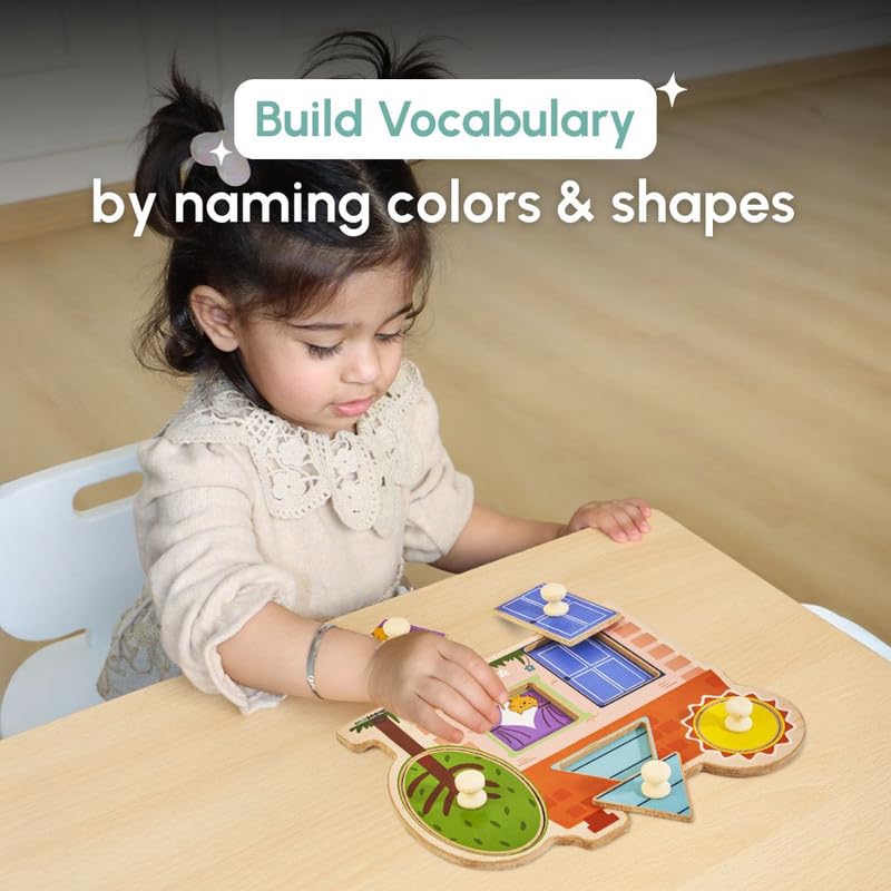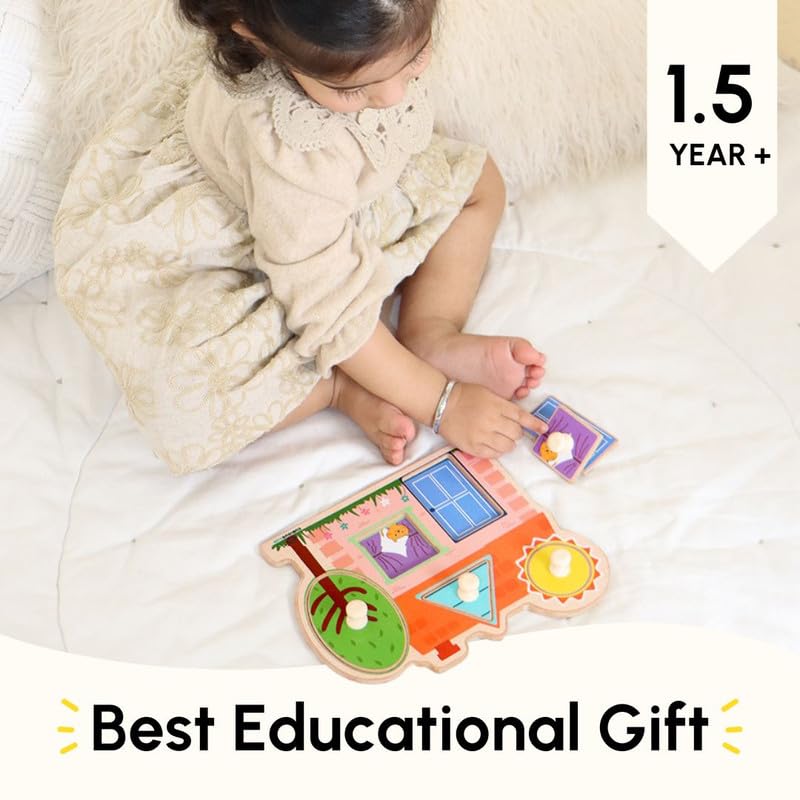 Improves Pincer Grasp: This fun puzzle comes with house-themed wooden blocks for kids, made just right for small hands to hold. The big pegs help toddlers pick and place pieces easily, building grip and hand control. A great choice in 2 years kids activity toys, it also fits ideally as wooden toys and fun Toddlers Activity Toys for everyday play.