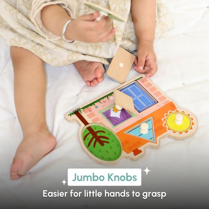 Curious Cub Wooden Pegged Shape Sorter Puzzle| House Themed Peg Board For Kids|Sensory Toys Shape Matching Game For Toddlers|Big Knobs for Easy Grip|Sorting Toy for Kids 1.5 Yrs+| Educational Toy Gift