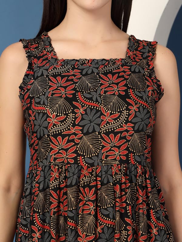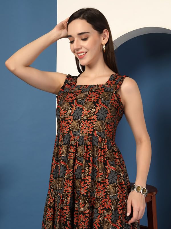 Daevish New Rayon Floral Printed Flared Midi Dress for Women | Women Calf Length Dress