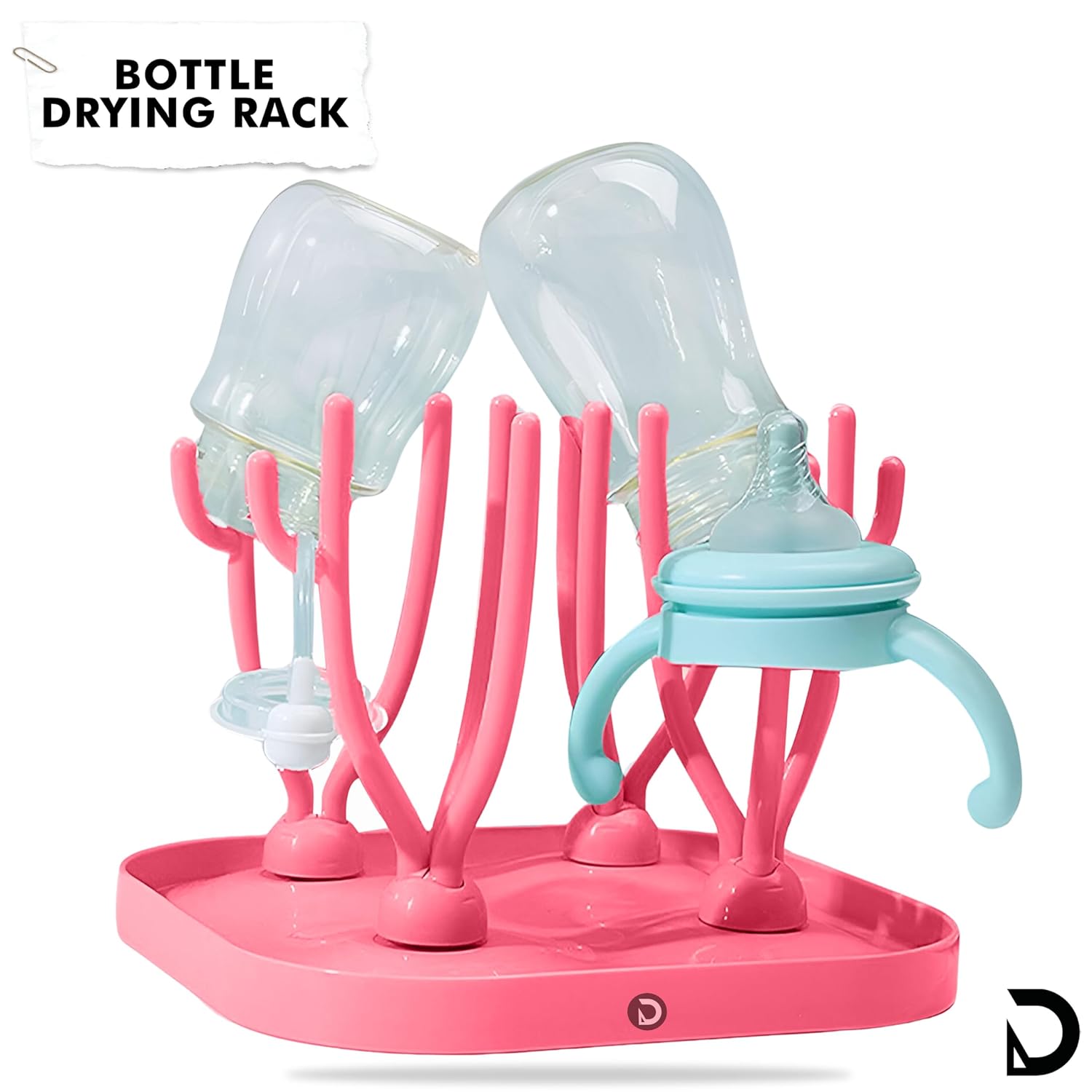 DaKos Baby Bottle Drying Rack, Bottle Sterilizer and Dryer, Drainer for Baby Bottles, Feeding Cup Nipple Storage, Compact and Portable Stylish Design (Tree Shaped, Pink)