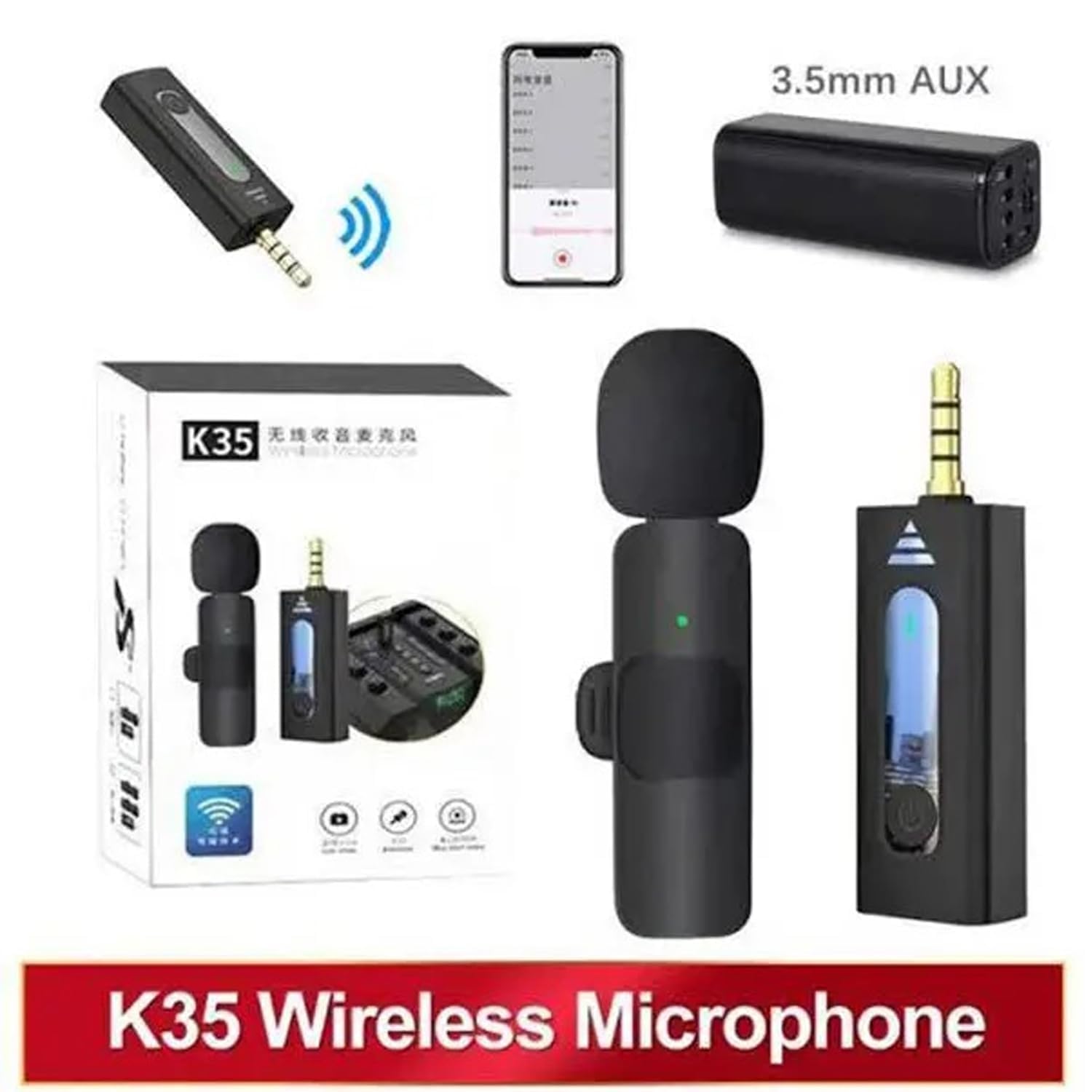 DDLC K-35 Wireless Collar Microphone Lapel Lavalier Omnidirectional Mic Plug and Play Mike for Vlogging Interview Live Streaming YouTube Compatible with BT Speakers, DSLR Camera (K35)